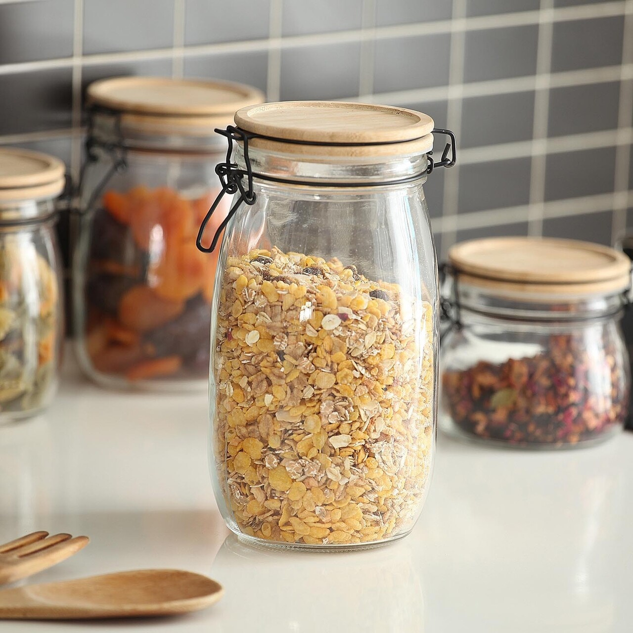 Borcan cu capac Paxton, Versa, 11.8 x 11.8 x 21.7 cm, sticla/bambus