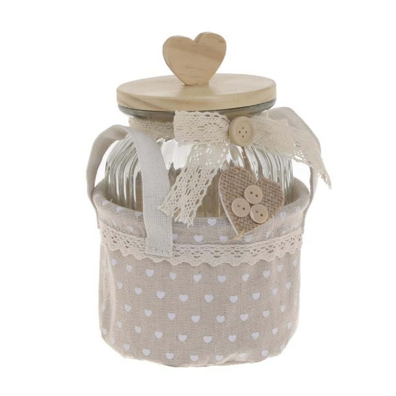 Borcanul este perfect pentru depozitarea alimentelor (cafea, zahar, condimente, etc). Acesta este frumos asezat intr-un cos din bumbac cu dantela si este un accesoriu excelent pentru bucatariile cu aer romantic.