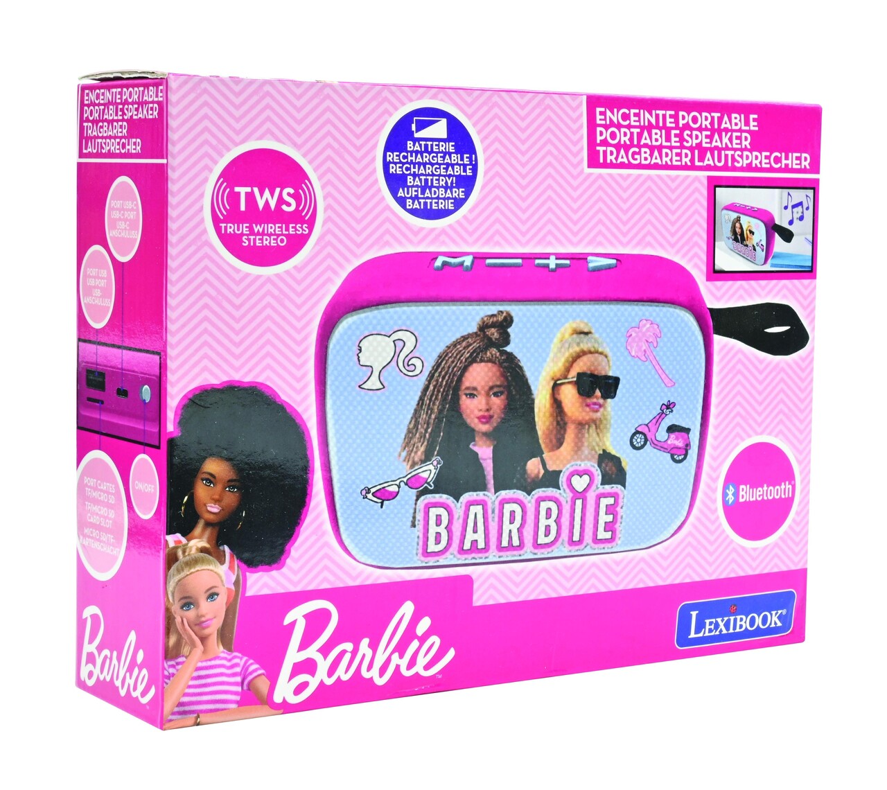 Boxa portabila pentru copii Barbie, LEXIBOOK, 11.7x3.8x7.8 cm, textil/silicon, roz