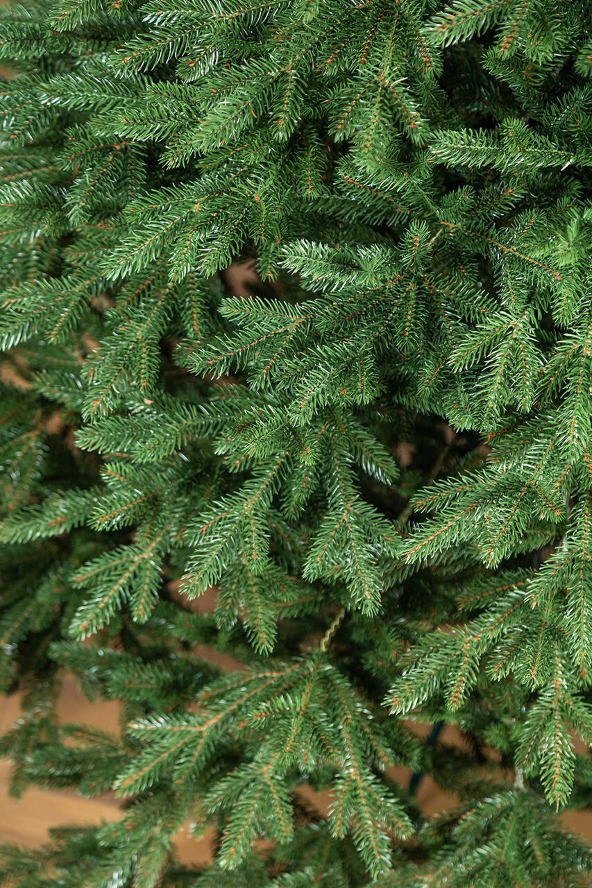 Crengile pot fi indoite cu usurinta in diferite directii pentru a modela diferitele ramuri ale pomului si a le da forme diferite. Crengutele individuale au finaluri realiste si variate, iar niciuna nu este taiata intr-un mod artificial si inestetic. Culoarea lor intr-un mod extrem de realist imita culoarea reala a coniferelor si nu se estompeaza in timp. Sarma ascunsa cu grija nu se vede prin ace si, in acelasi timp, este suficient de groasa si rezistenta pentru ca bradul sa va serveasca ani de zile! Ace din folie PVC, puternice si durabile, sunt in acelasi timp extrem de placute la atingere. Deoarece bradul de Craciun – spre deosebire de copacii adevarati – nu ii pierde, nu va fi nevoie sa aspirati camera in mod regulat. Mai mult decat atat, acele sunt distribuite uniform pe toata lungimea ramurii, garantand astfel un efect vizual de densitate, fara goluri.