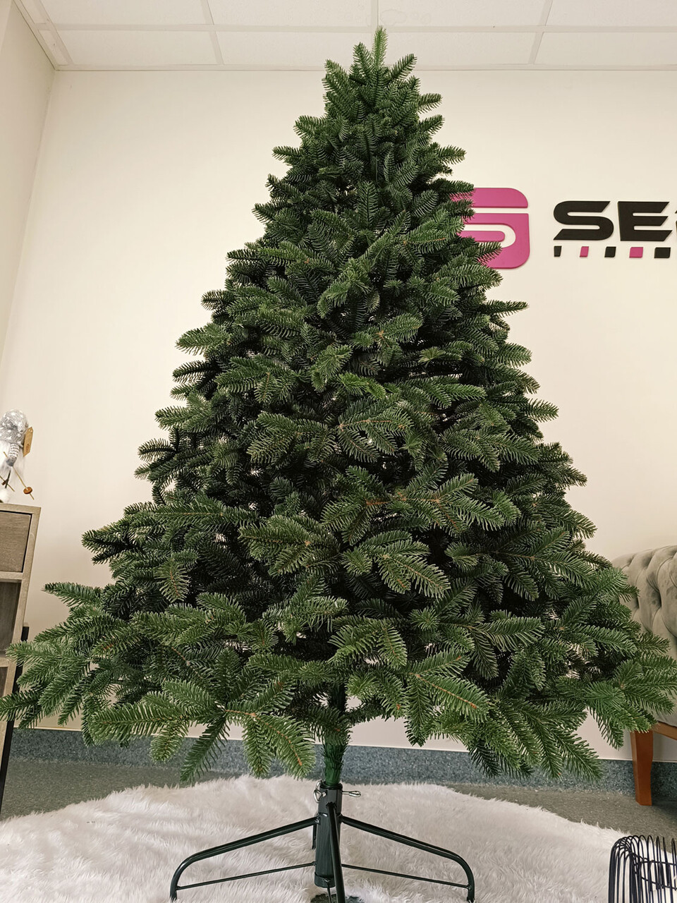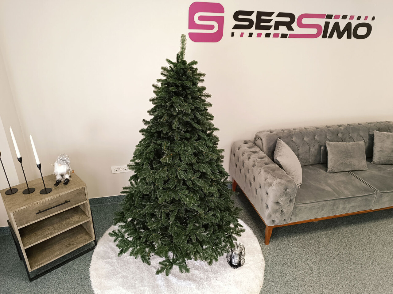 Cu bradul Christmas Deluxe by Sersimo® – un element inseparabil al Craciunului – veti petrece aceasta perioada magica de iarna intr-o aura de bucurie si caldura. Ganditi-va doar cat de frumos vor arata decoratiunile – stralucitoare, presarate cu sclipici, incalzind interiorul. Chiar si oamenii care nu impartasesc entuziasmul de Craciun recunosc ca un brad de Craciun impodobit frumos creeaza o atmosfera aparte. Cel mai mare avantaj al bradului nostru de Craciun este numarul mare de ramuri dens aranjate. Datorita densitatii si elegantei sale captivante, nu necesita prezenta a numeroase decoratiuni, fiind cu adevarat un decor grozav al oricarui interior! Etajul cel mai de jos al pomului de Craciun este la inaltimea potrivita, astfel incat sa puteti pune cu usurinta cadourile de Craciun sub el.