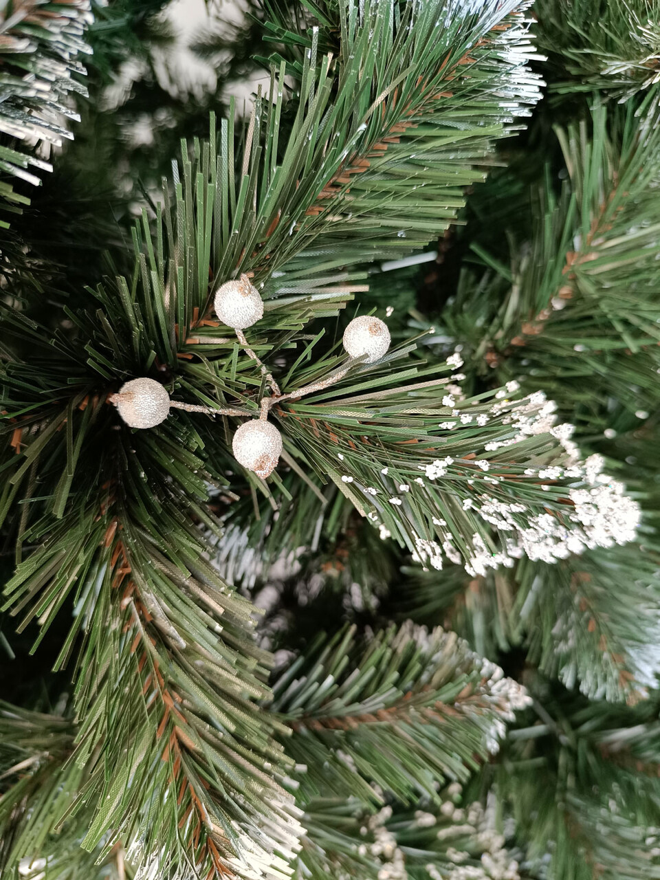 Crengile pot fi indoite cu usurinta in diferite directii pentru a modela diferitele ramuri ale pomului si a le da forme diferite. Crengutele individuale au finaluri realiste si variate, iar niciuna nu este taiata intr-un mod artificial si inestetic. Culoarea lor intr-un mod extrem de realist imita culoarea reala a coniferelor si nu se estompeaza in timp. Sarma ascunsa cu grija nu se vede prin ace si, in acelasi timp, este suficient de groasa si rezistenta pentru ca bradul sa va serveasca ani de zile! Ace din folie PVC, puternice si durabile, sunt in acelasi timp extrem de placute la atingere. Deoarece bradul de Craciun – spre deosebire de copacii adevarati – nu ii pierde, nu va fi nevoie sa aspirati camera in mod regulat. Mai mult decat atat, acele sunt distribuite uniform pe toata lungimea ramurii, garantand astfel un efect vizual de densitate, fara goluri.