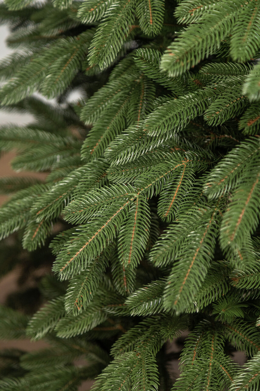 Crengile pot fi indoite cu usurinta in diferite directii pentru a modela diferitele ramuri ale pomului si a le da forme diferite. Crengutele individuale au finaluri realiste si variate, iar niciuna nu este taiata intr-un mod artificial si inestetic. Culoarea lor intr-un mod extrem de realist imita culoarea reala a coniferelor si nu se estompeaza in timp. Sarma ascunsa cu grija nu se vede prin ace si, in acelasi timp, este suficient de groasa si rezistenta pentru ca bradul sa va serveasca ani de zile! Ace din folie PVC, puternice si durabile, sunt in acelasi timp extrem de placute la atingere. Deoarece bradul de Craciun – spre deosebire de copacii adevarati – nu ii pierde, nu va fi nevoie sa aspirati camera in mod regulat. Mai mult decat atat, acele sunt distribuite uniform pe toata lungimea ramurii, garantand astfel un efect vizual de densitate, fara goluri.