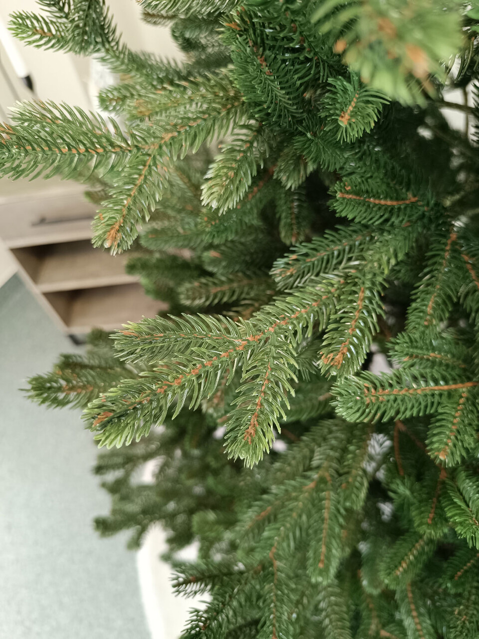 Crengile pot fi indoite cu usurinta in diferite directii pentru a modela diferitele ramuri ale pomului si a le da forme diferite. Crengutele individuale au finaluri realiste si variate, iar niciuna nu este taiata intr-un mod artificial si inestetic. Culoarea lor intr-un mod extrem de realist imita culoarea reala a coniferelor si nu se estompeaza in timp. Sarma ascunsa cu grija nu se vede prin ace si, in acelasi timp, este suficient de groasa si rezistenta pentru ca bradul sa va serveasca ani de zile! Ace din folie PVC, puternice si durabile, sunt in acelasi timp extrem de placute la atingere. Deoarece bradul de Craciun – spre deosebire de copacii adevarati – nu ii pierde, nu va fi nevoie sa aspirati camera in mod regulat. Mai mult decat atat, acele sunt distribuite uniform pe toata lungimea ramurii, garantand astfel un efect vizual de densitate, fara goluri.