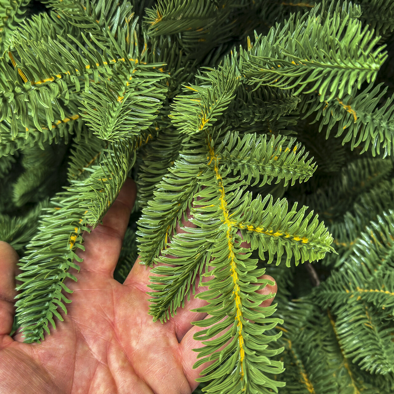 Crengile pot fi indoite cu usurinta in diferite directii pentru a modela diferitele ramuri ale pomului si a le da forme diferite. Crengutele individuale au finaluri realiste si variate, iar niciuna nu este taiata intr-un mod artificial si inestetic. Culoarea lor intr-un mod extrem de realist imita culoarea reala a coniferelor si nu se estompeaza in timp. Sarma ascunsa cu grija nu se vede prin ace si, in acelasi timp, este suficient de groasa si rezistenta pentru ca bradul sa va serveasca ani de zile! Ace din folie PVC, puternice si durabile, sunt in acelasi timp extrem de placute la atingere. Deoarece bradul de Craciun – spre deosebire de copacii adevarati – nu ii pierde, nu va fi nevoie sa aspirati camera in mod regulat. Mai mult decat atat, acele sunt distribuite uniform pe toata lungimea ramurii, garantand astfel un efect vizual de densitate, fara goluri.