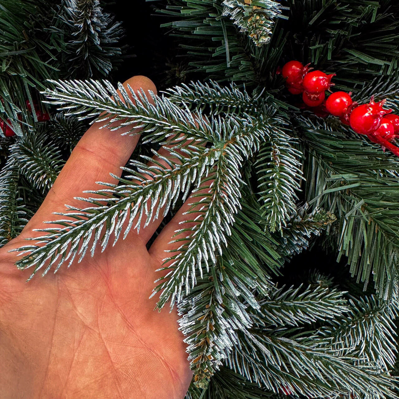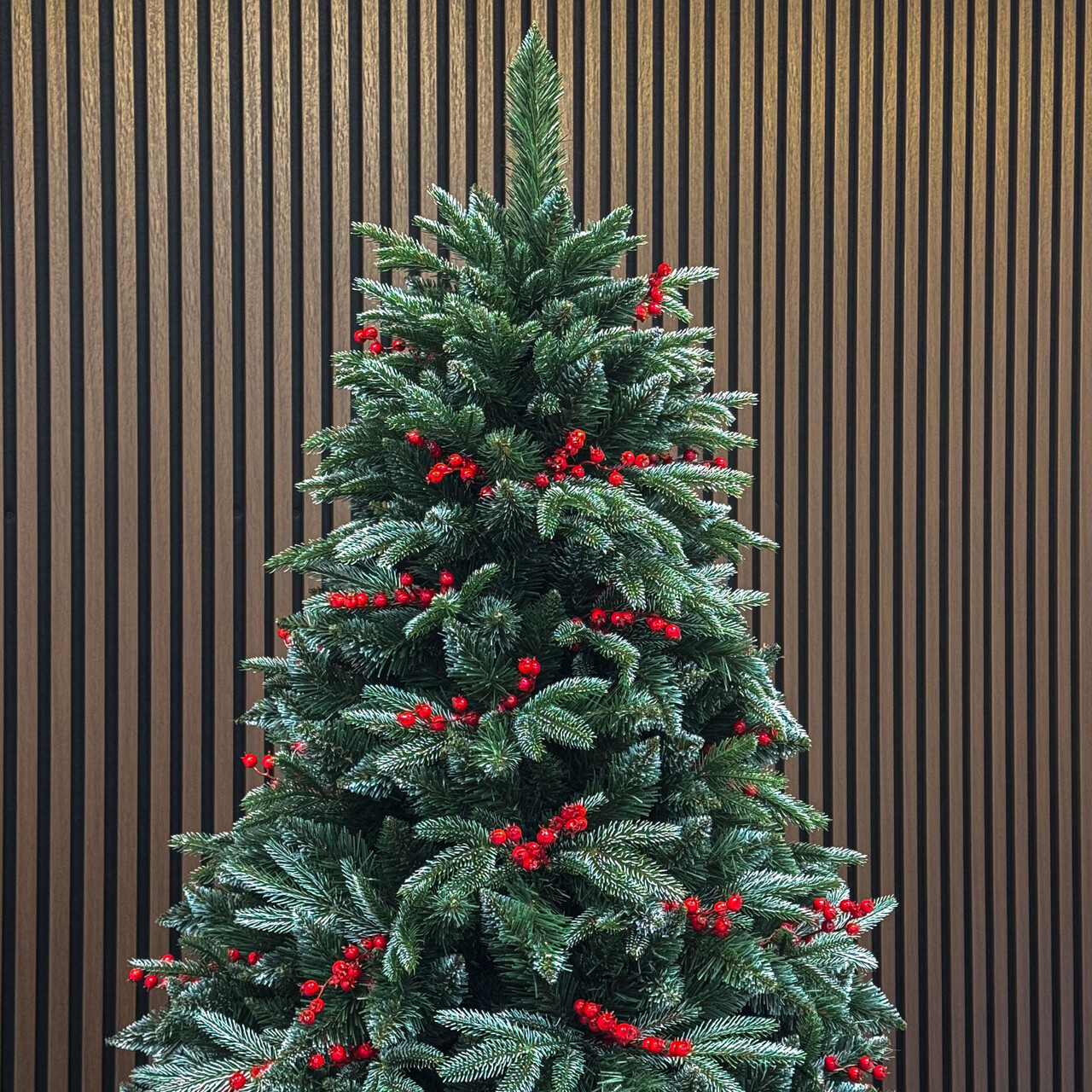 Brad artificial Sersimo, Miahelene Elite, verde nins cu merisoare, Mix 2D+3D, 220 cm