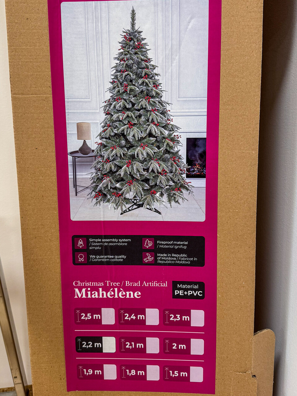 – Inaltimea totala a bradului (dimensiune masurata de la podea pana in varf, cu tot cu suport): 220 cm