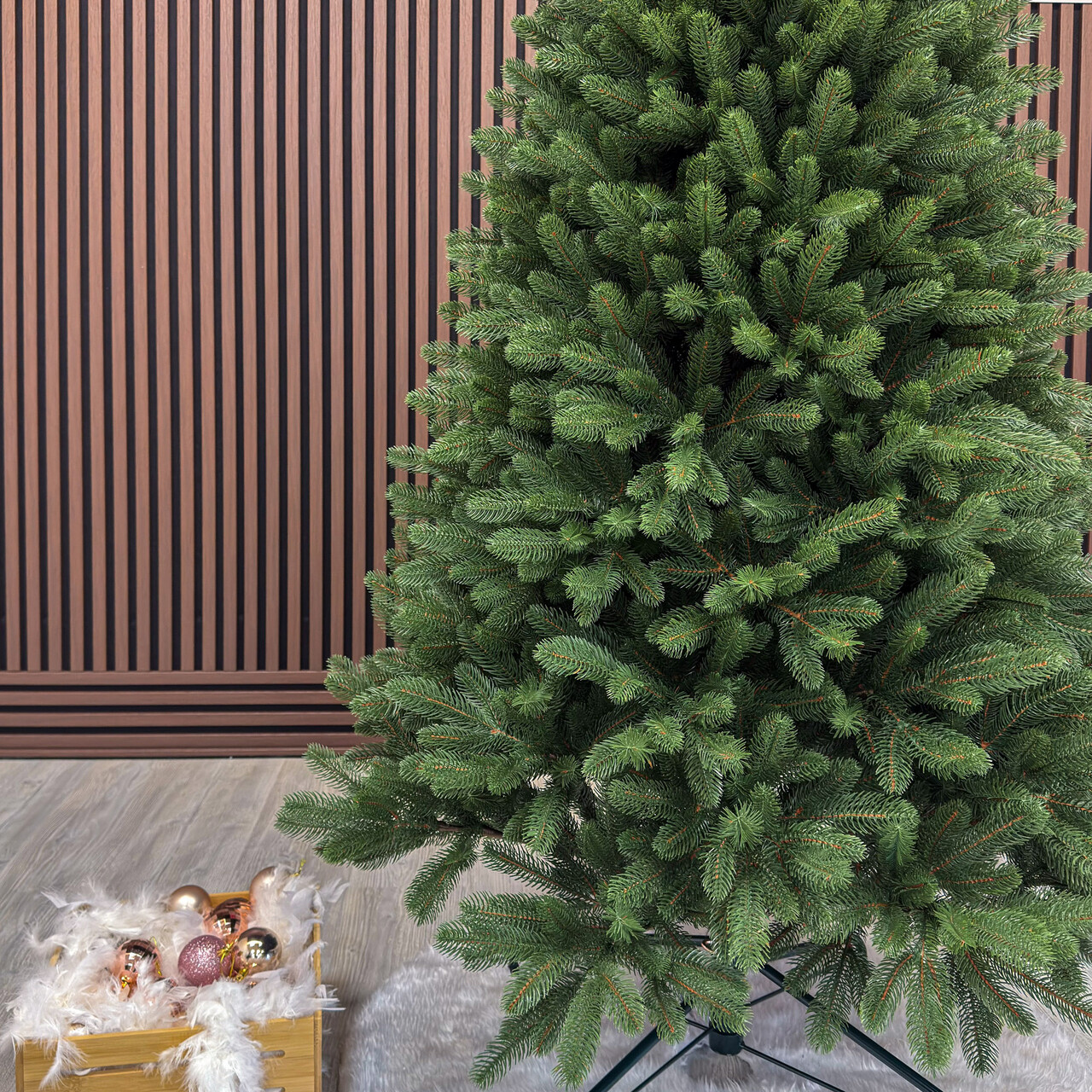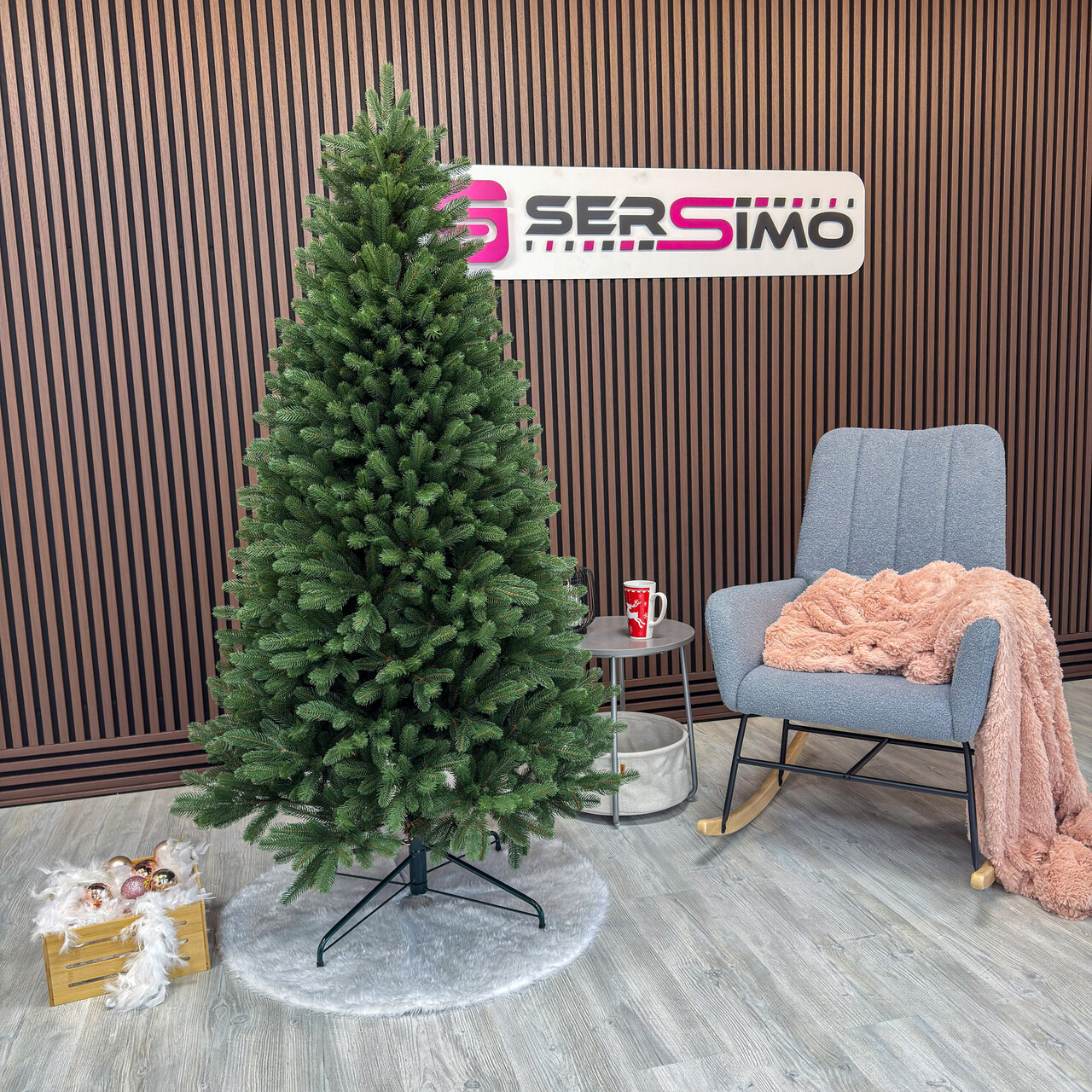 Cu bradul Christmas Deluxe by Sersimo® – un element inseparabil al Craciunului – veti petrece aceasta perioada magica de iarna intr-o aura de bucurie si caldura. Ganditi-va doar cat de frumos vor arata decoratiunile – stralucitoare, presarate cu sclipici, incalzind interiorul. Chiar si oamenii care nu impartasesc entuziasmul de Craciun recunosc ca un brad de Craciun impodobit frumos creeaza o atmosfera aparte. Cel mai mare avantaj al bradului nostru de Craciun este numarul mare de ramuri dens aranjate. Datorita densitatii si elegantei sale captivante, nu necesita prezenta a numeroase decoratiuni, fiind cu adevarat un decor grozav al oricarui interior! Etajul cel mai de jos al pomului de Craciun este la inaltimea potrivita, astfel incat sa puteti pune cu usurinta cadourile de Craciun sub el.