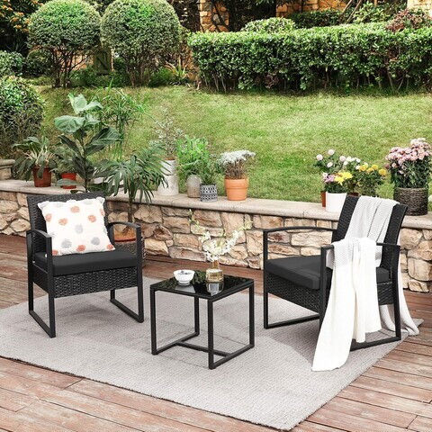 Set mobilier pentru gradina/terasa 4 piese, Lounge, otel/polietilena/sticla temperata, maro/grej