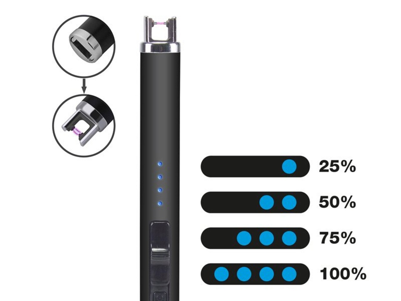 O incarcare completa prin cablul USB inclus permite pana la 50 aprinderi iar statusul bateriei poate fi urmarit cu usurinta prin indicatorii LED de pe produs.