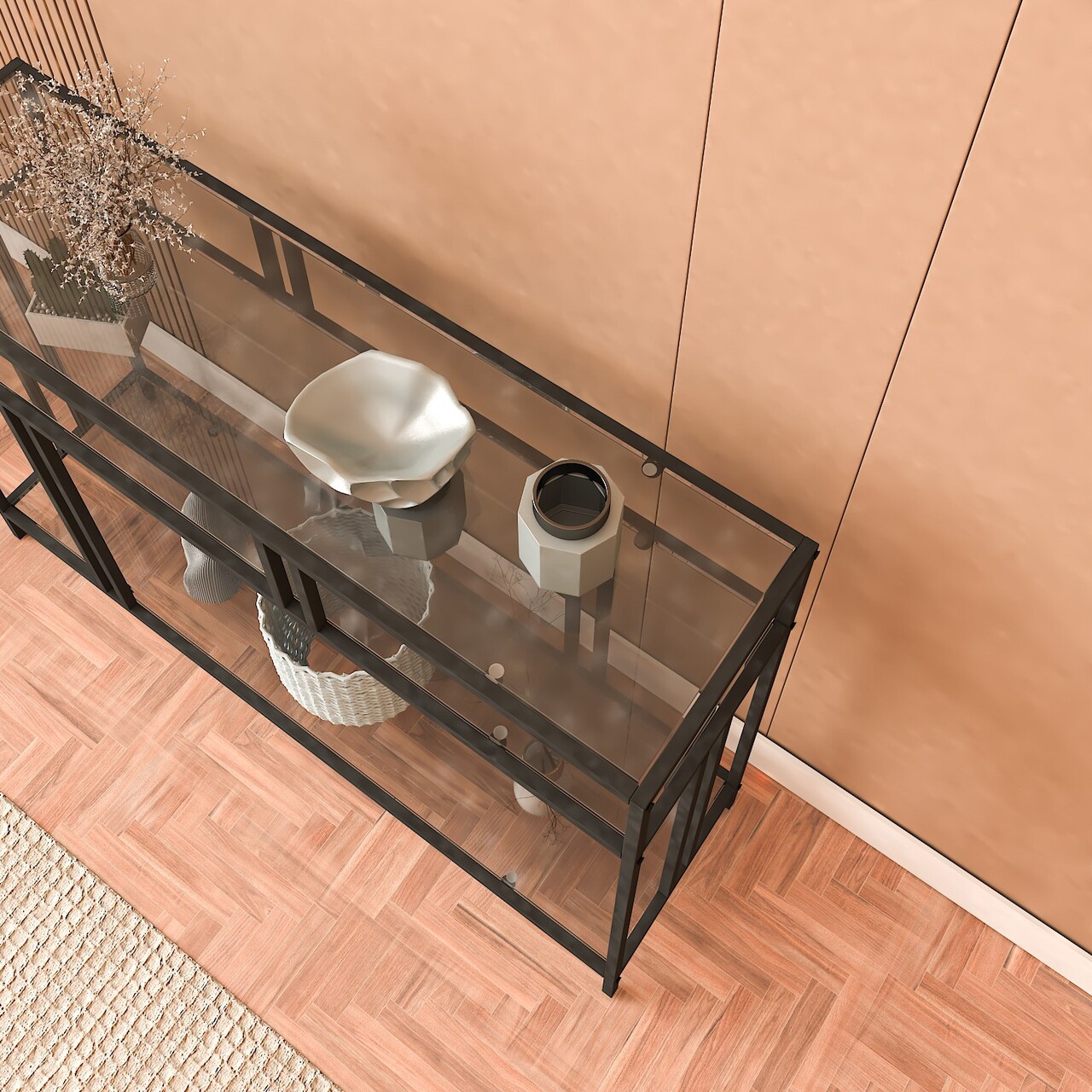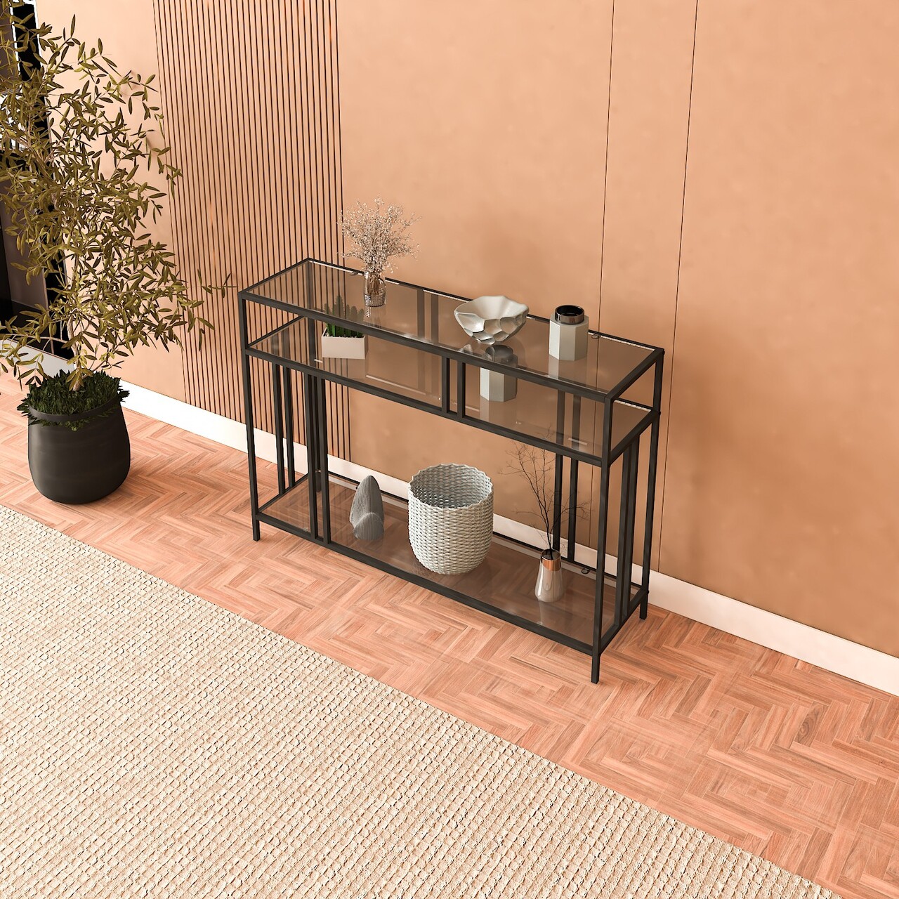 Bufet, Caliente, Venedik, 100x30x78 cm, Sticla temperata, Negru / Fume
