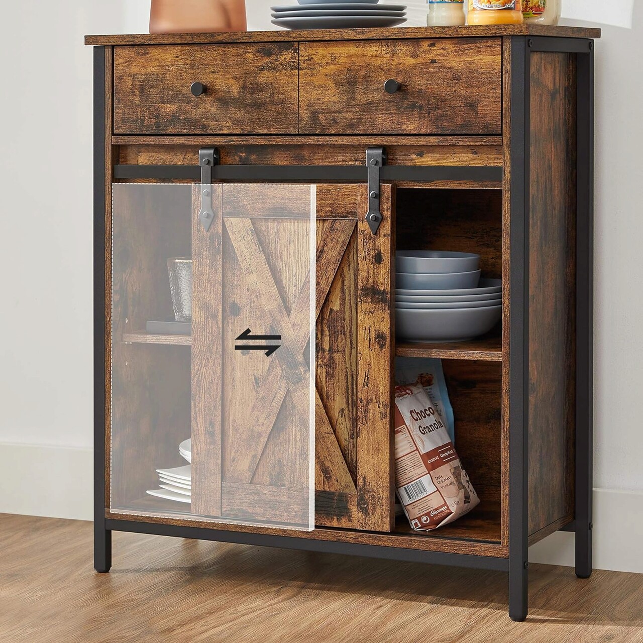 Bufet cu usa glisanta Vasagle, 70x30x80 cm, PAL/otel, maro rustic