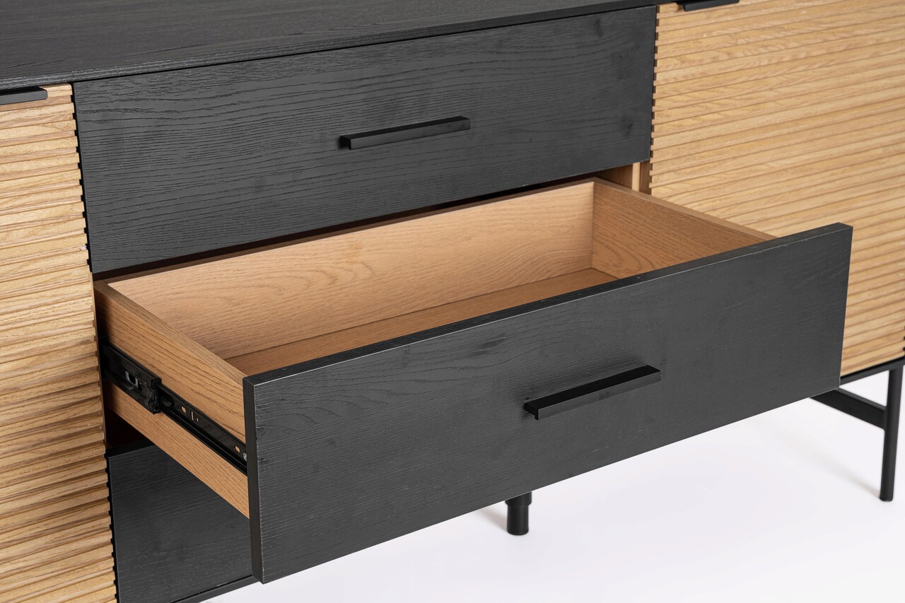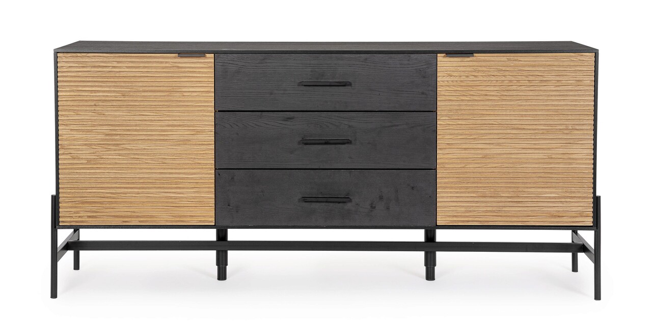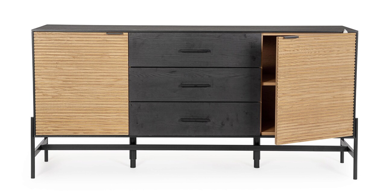 Bufet inferior Allycia, Bizzotto, 164 x 40 x 75 cm, lemn de frasin/MDF, negru/natural