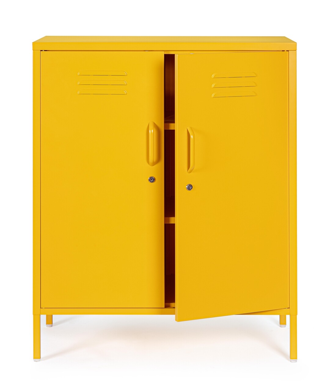 Bufet inferior Cambridge, Bizzotto, 2 rafturi reglabile, 80 x 40 x 101.5 cm, otel, galben