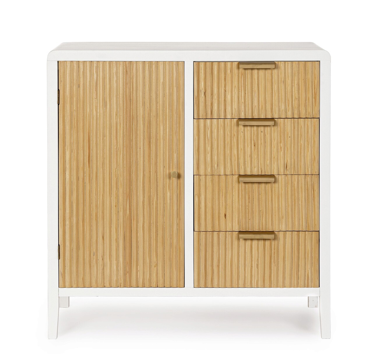 Bufet inferior Charley, Bizzotto, 80 x 40 x 82 cm, MDF/paulownia/pin/otel, alb/natural