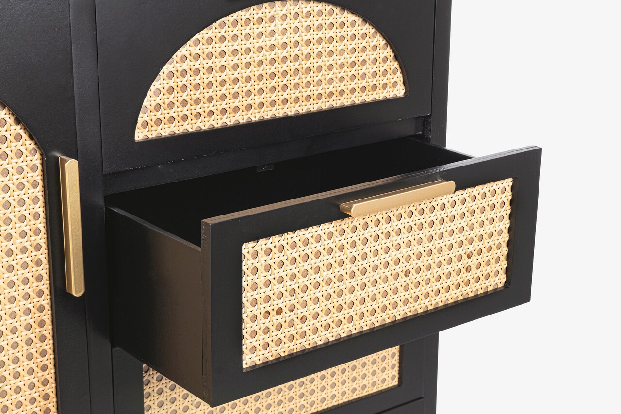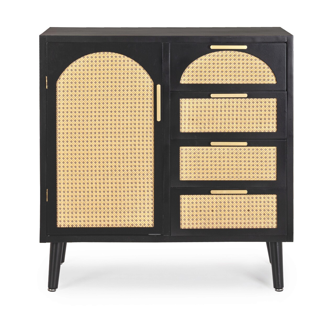 Bufet inferior cu 2 usi Josine, Bizzotto, 80 x 40 x 80 cm, lemn de pin/MDF/ratan, negru