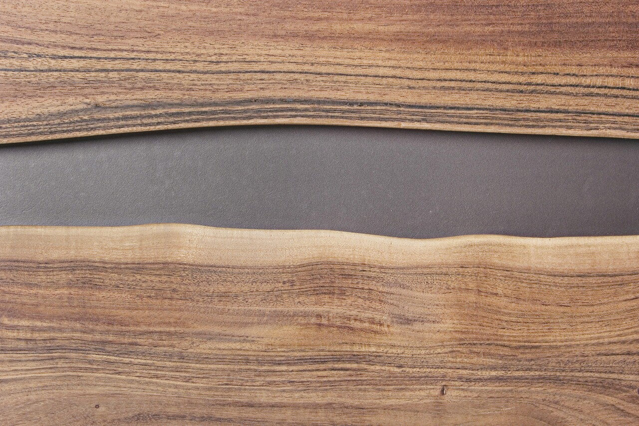 Cadru din lemn de salcam, picioare din otel acoperit cu pulbere epoxidica.