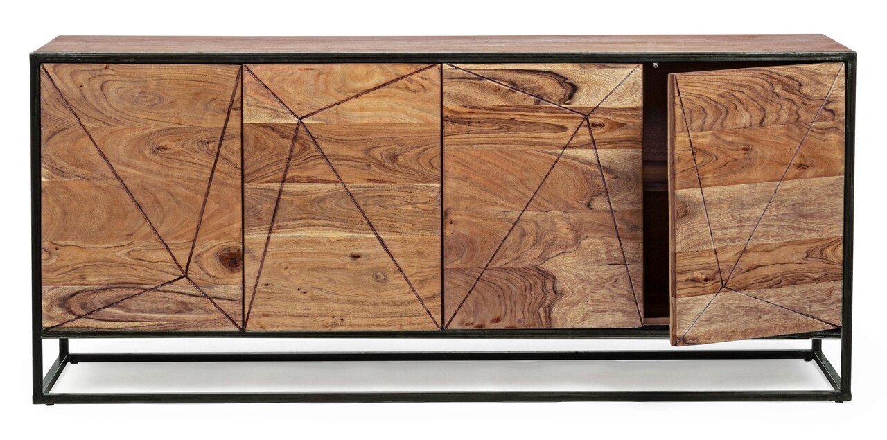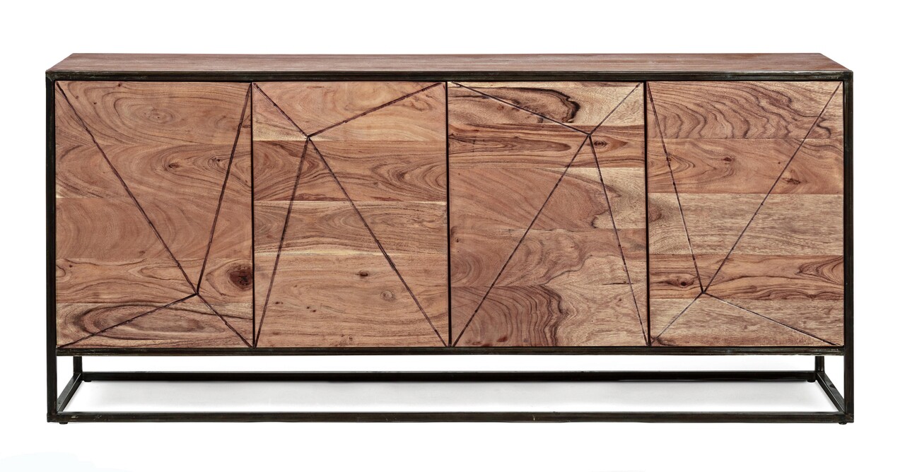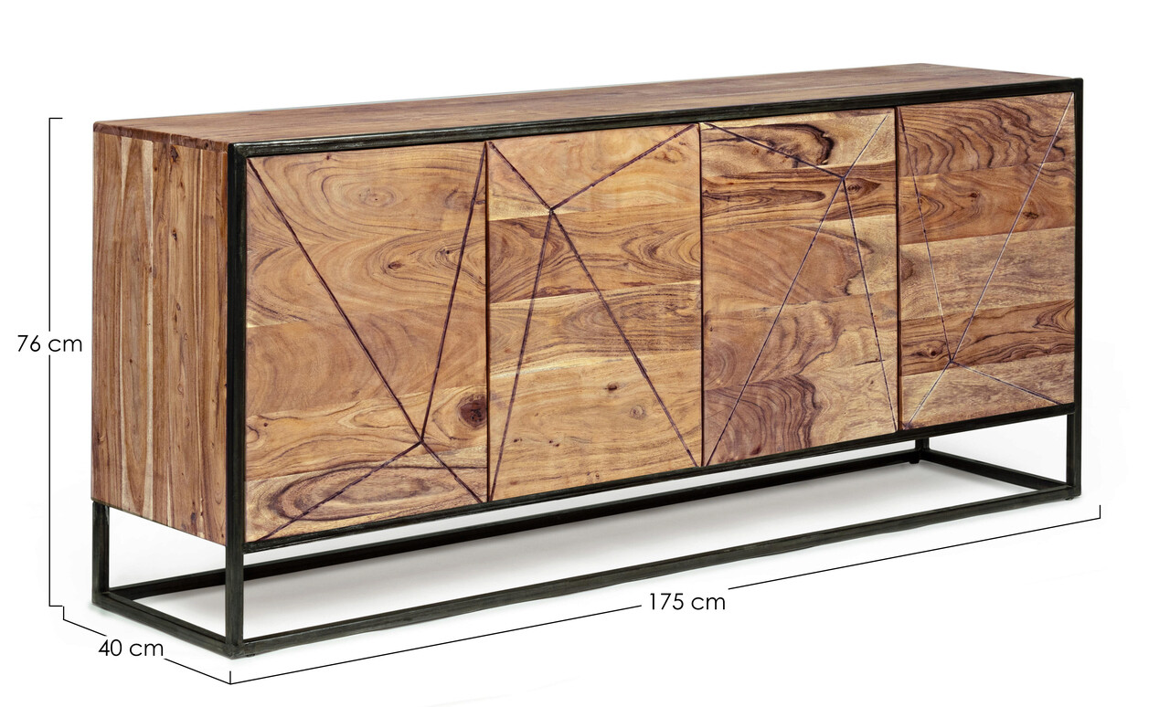 Bufet inferior cu 4 usi Egon, Bizzotto, 175x40x76 cm, otel/lemn de salcam