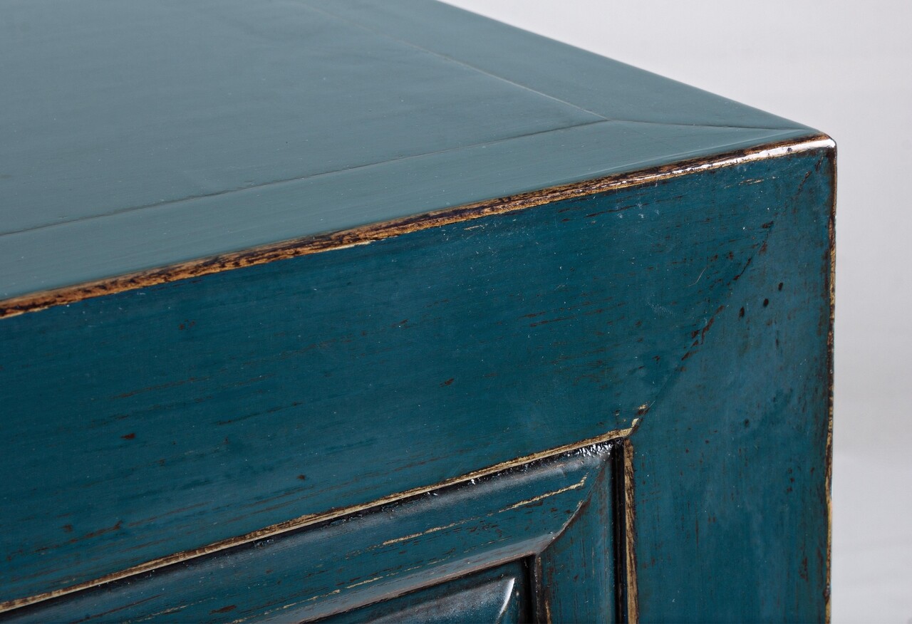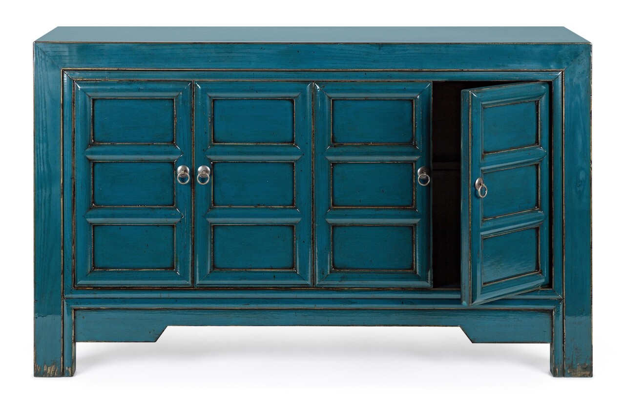 Bufet inferior Jinan, Bizzotto, 133x40x82 cm, lemn de ulm reciclat, albastru