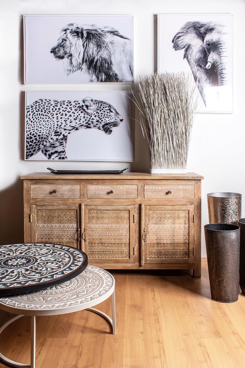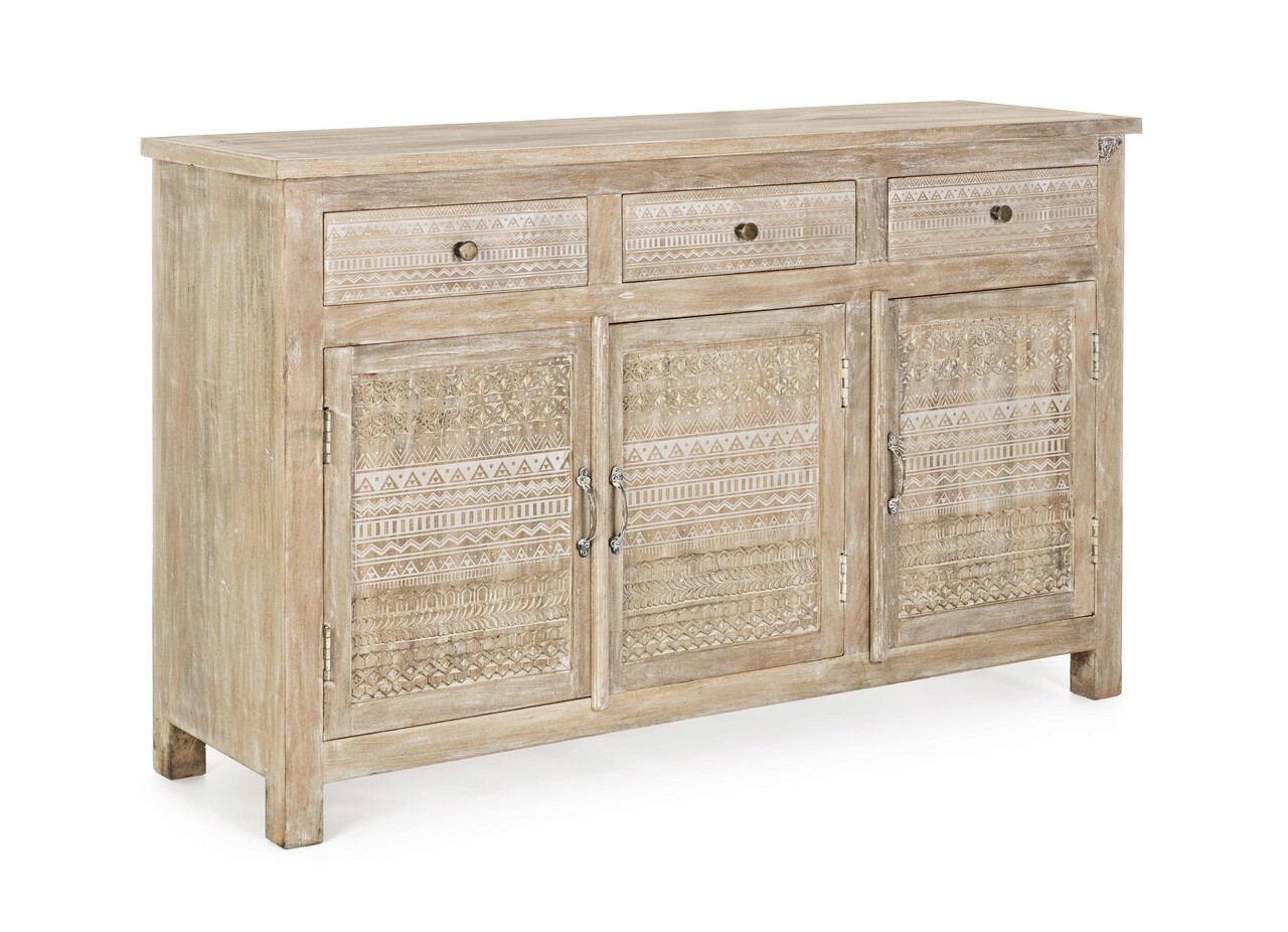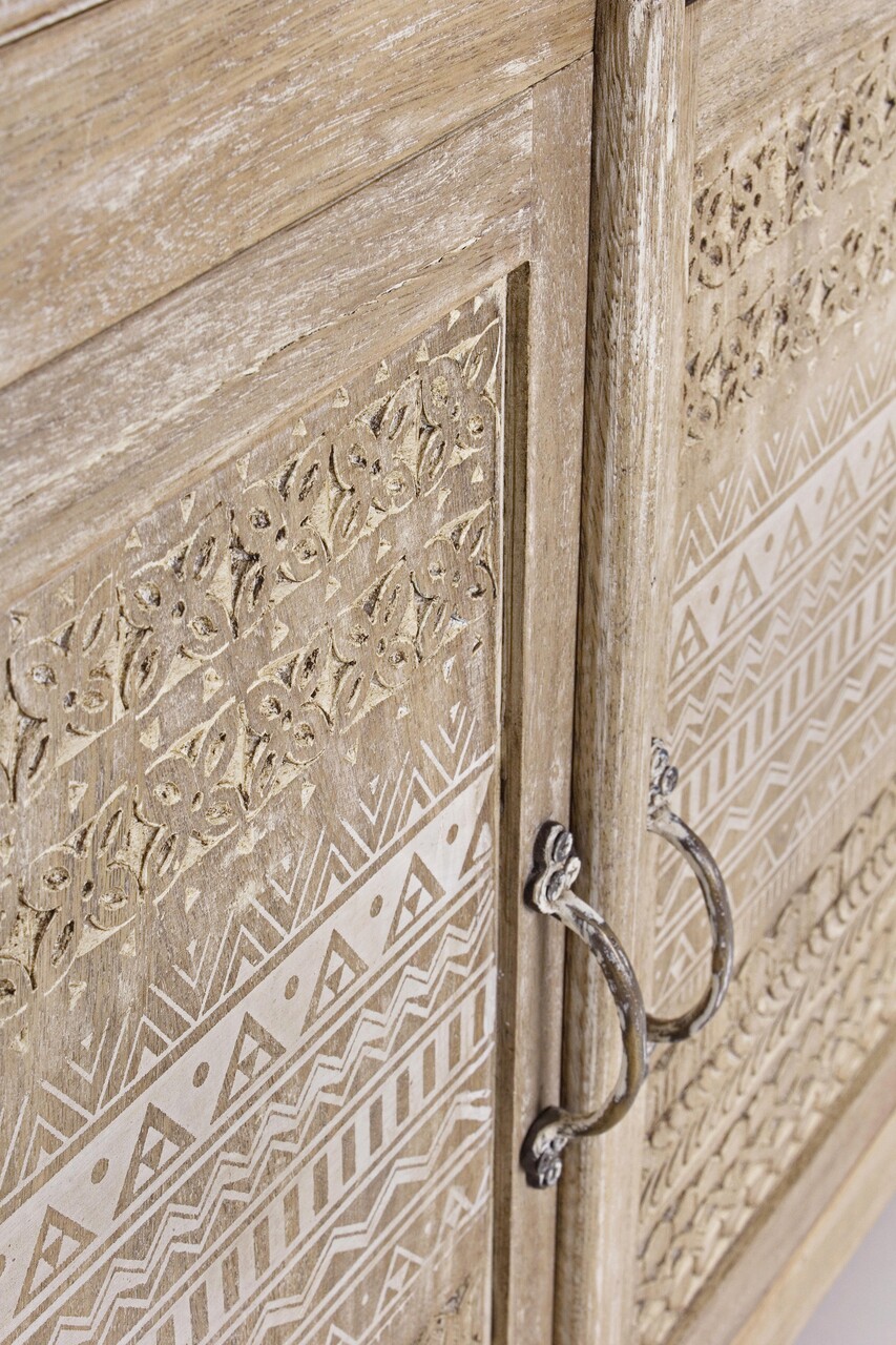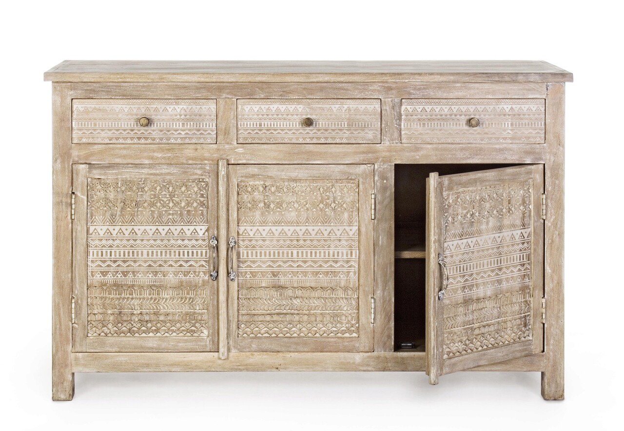 Bufet inferior Mayra, Bizzotto, 135 x 40 x 85 cm, lemn de mango, detalii sculptate manual