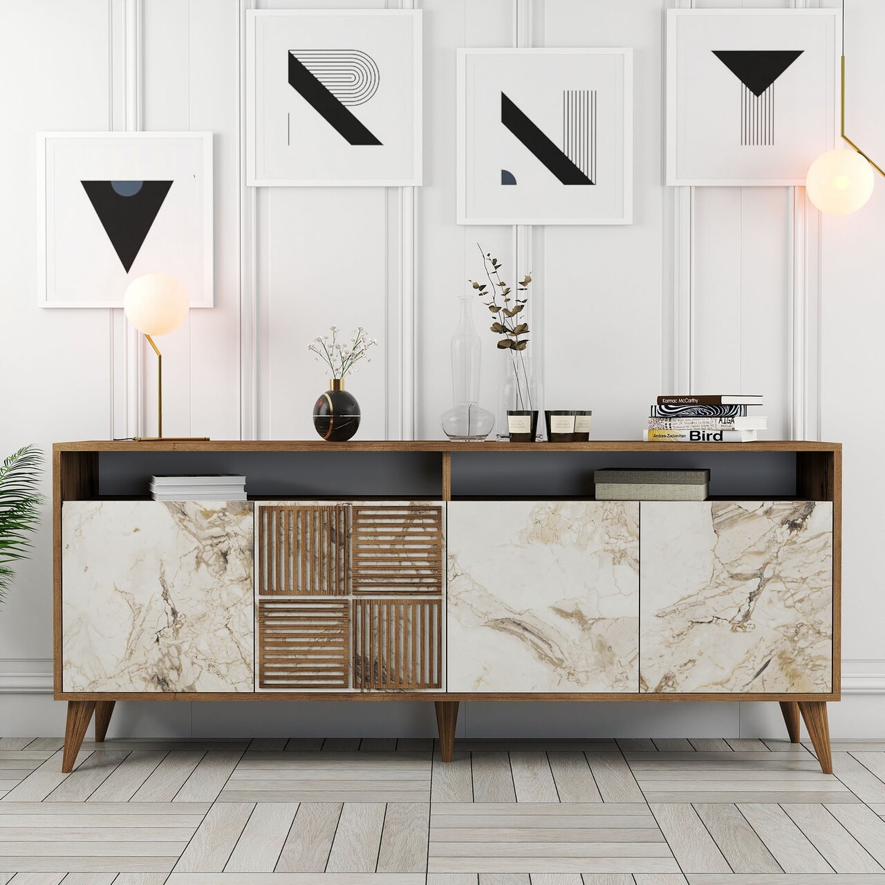 Bufet inferior Milan Marble, Hommy Craft, 180x35x78.6 cm, maro/alb