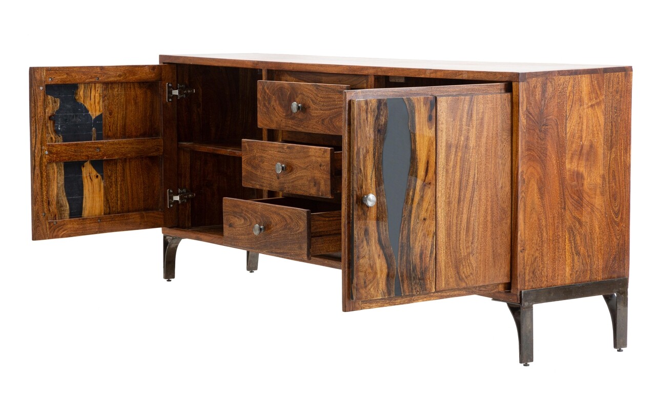 Bufet inferior Mustang, Mauro Ferretti, 175x40x75 cm, lemn masiv de salcam, maro