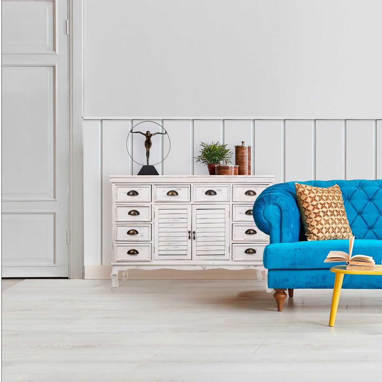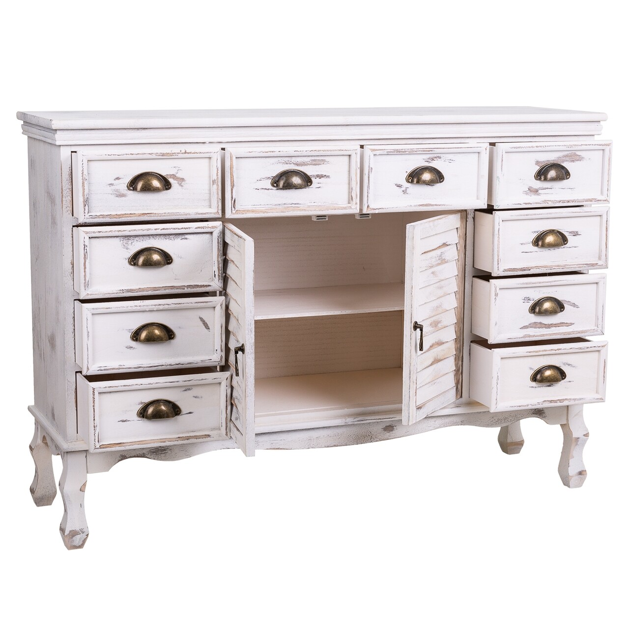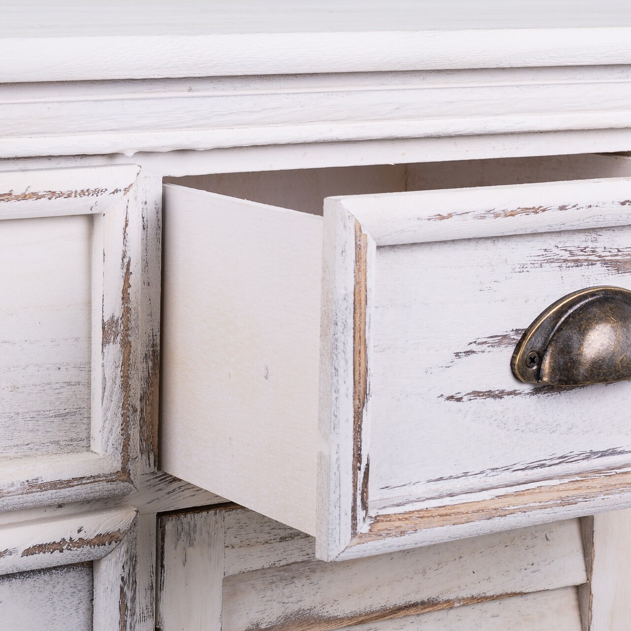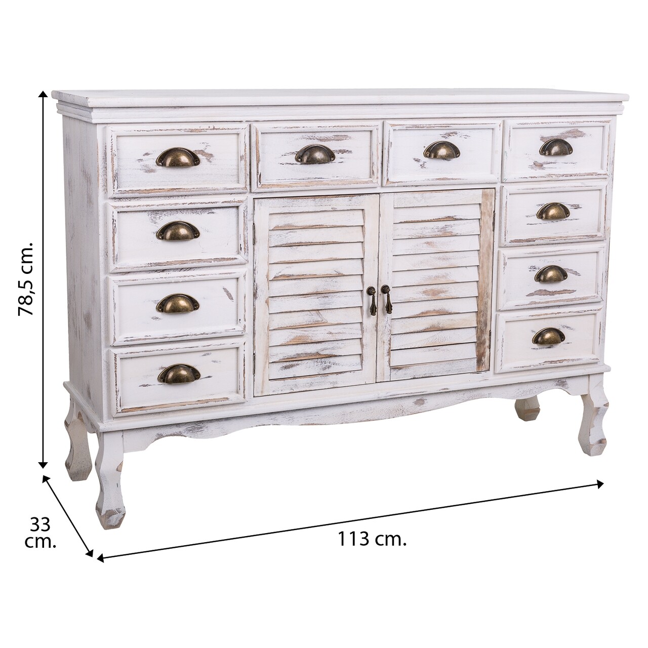 Bufet inferior Peyton, Creaciones Meng, 113x33x78.5 cm, lemn de paulownia, alb antic