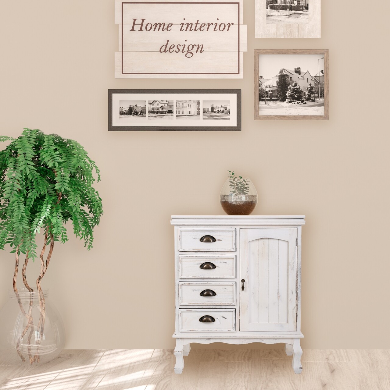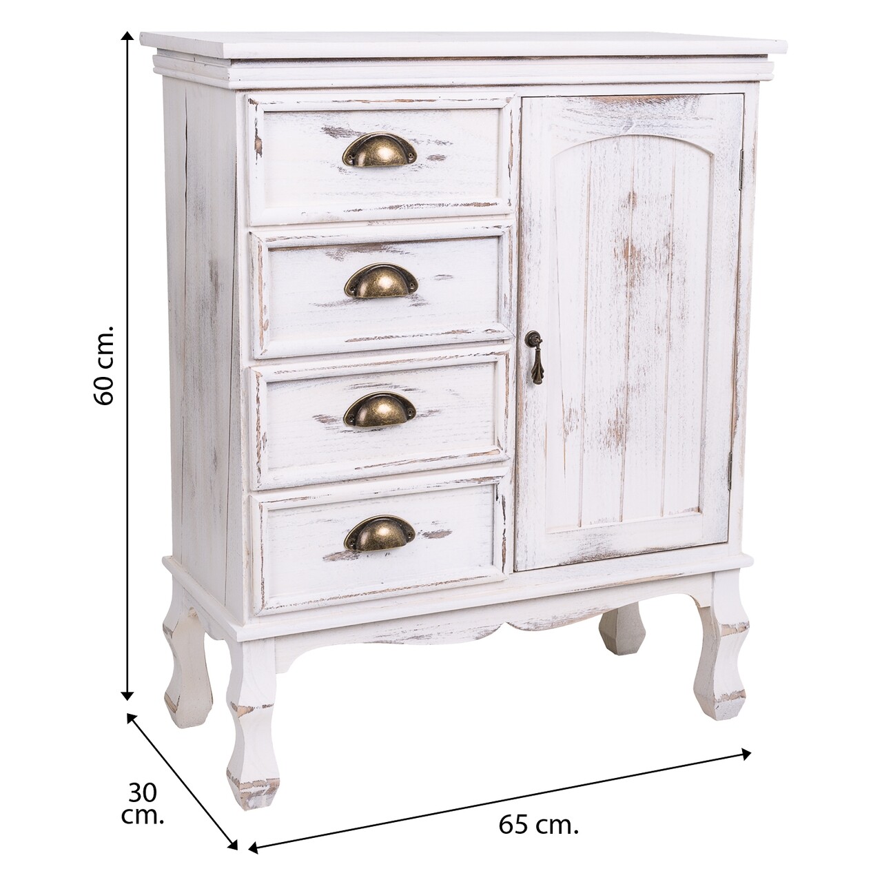 Bufet inferior Peyton, Creaciones Meng, 65x30x80 cm, lemn de paulownia, alb antic