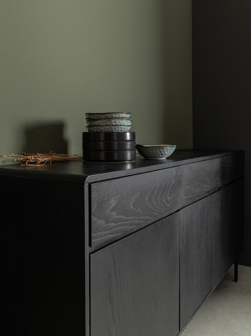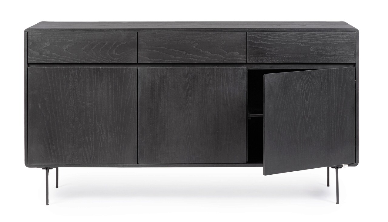 Bufet inferior Widald, Bizzotto, 160 x 40 x 85.5 cm, MDF/furnir din lemn de frasin, negru