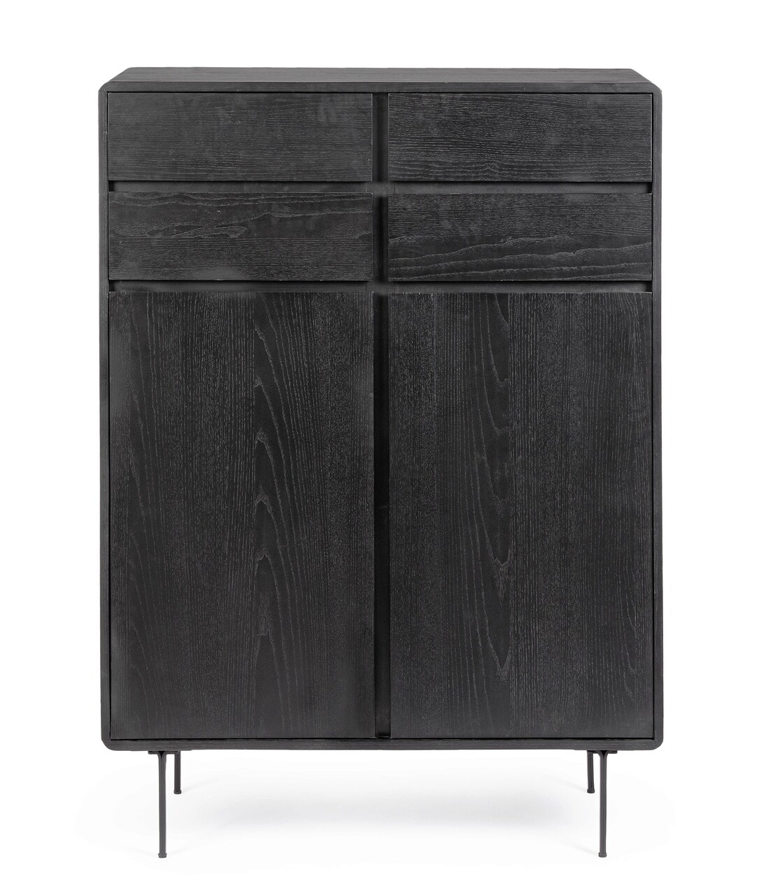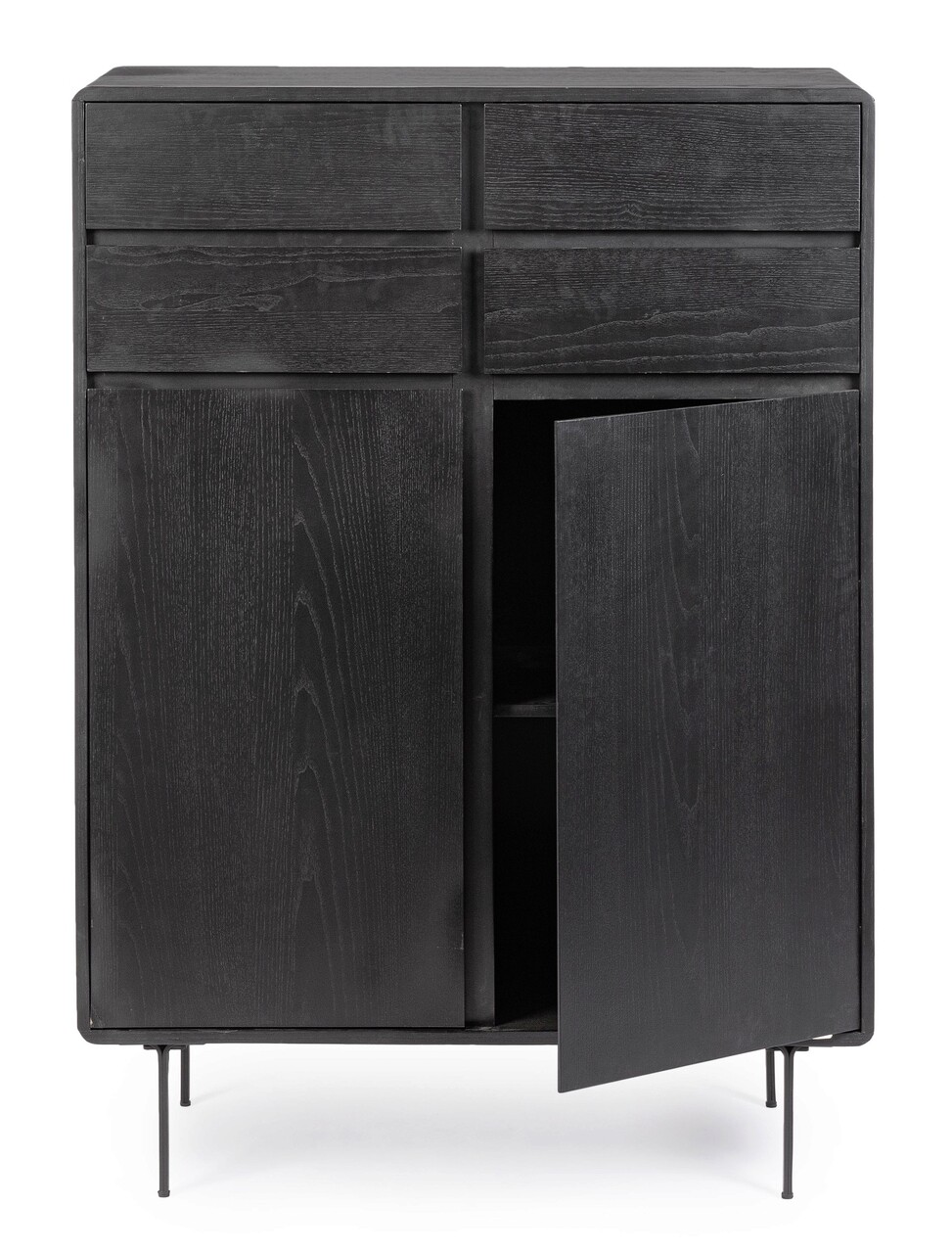 Bufet inferior Widald, Bizzotto, 90 x 40 x 130.5 cm, MDF/furnir din lemn de frasin, negru
