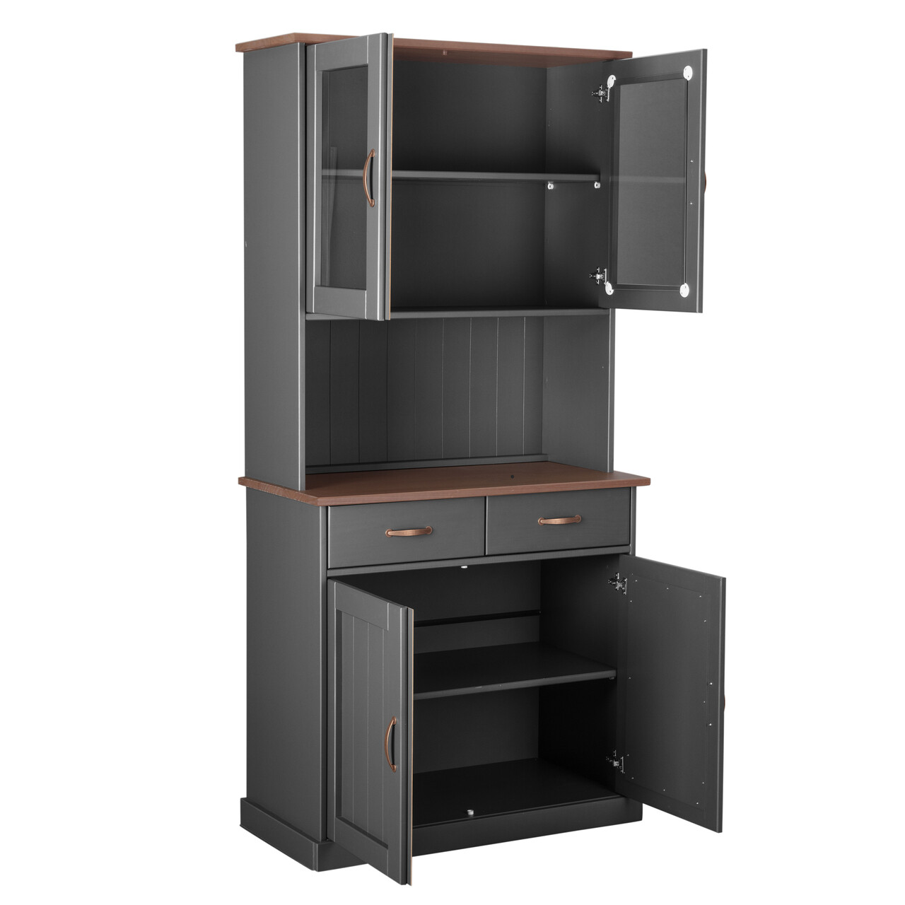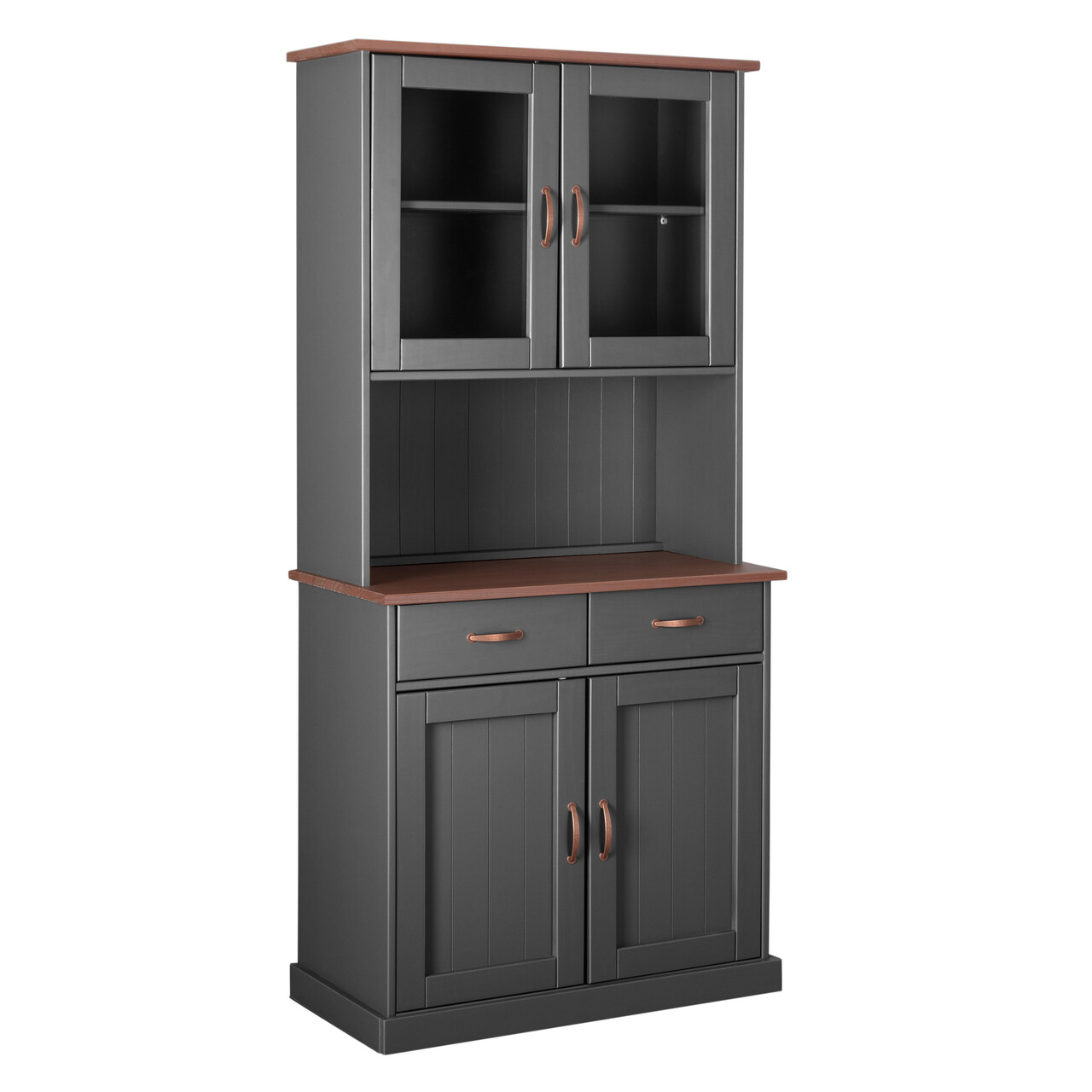 Aceasta frumoasa vitrina cu manere metalice de culoarea cuprului si fronturi din sticla securizata transparenta are doua sertare pe glisiere metalice cu glisare usoara si doua rafturi in spatele a patru usi. Deoarece satisfactia clientilor este prioritatea noastra principala, toate piesele noastre de mobilier sunt fabricate in conformitate cu standardele de mediu si de calitate. Toate piesele noastre de mobilier sunt inovatoare, practice si durabile, asigurandu-le ca vor rezista multi ani de acum inainte.