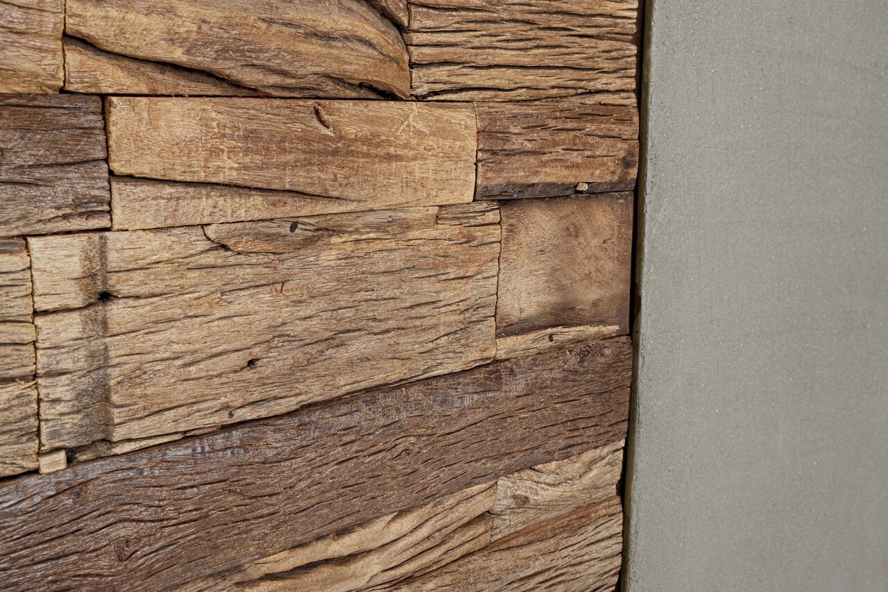 Obiectele din lemn reciclat se caracterizeaza prin prezenta elementelor din lemn de diferite specii si culori. Orice despicaturi, fisuri sau imperfectiuni, care pot aparea si in timp, sunt caracteristici ale acestui material si fac fiecare piesa unica si originala.