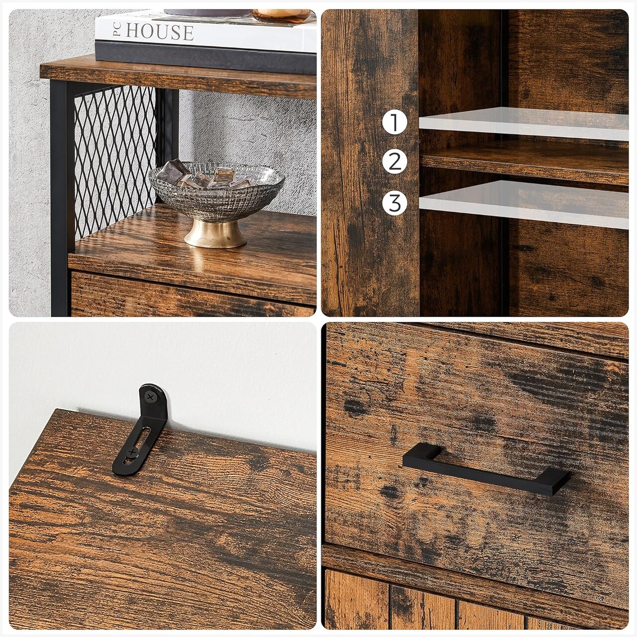 Bufet multifunctional, Vasagle, 60x30x108 cm, PAL/otel, maro rustic