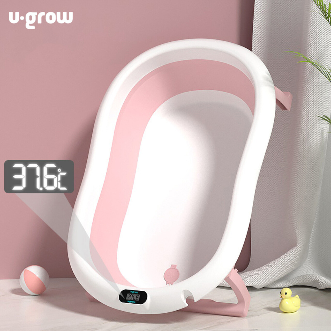 Cadita pliabila cu pernuta si termometru digital U-Grow, 77.5x50x21 cm, polipropilena/poliester, roz