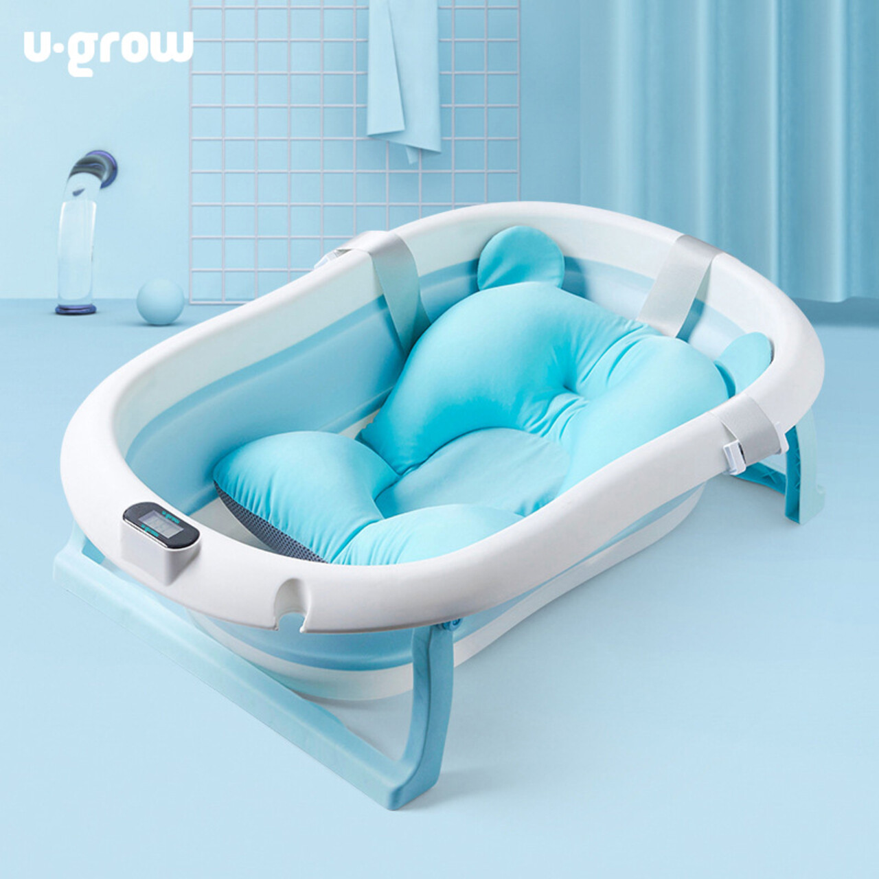Cadita pliabila cu pernuta si termometru digital U-Grow, 77.5x50x21 cm, polipropilena/poliester, albastru