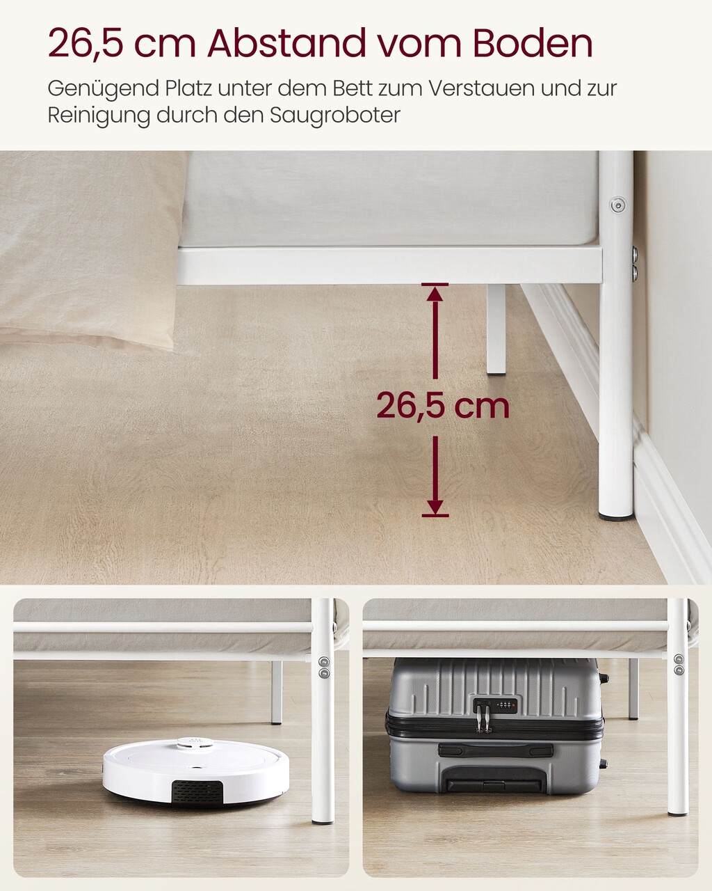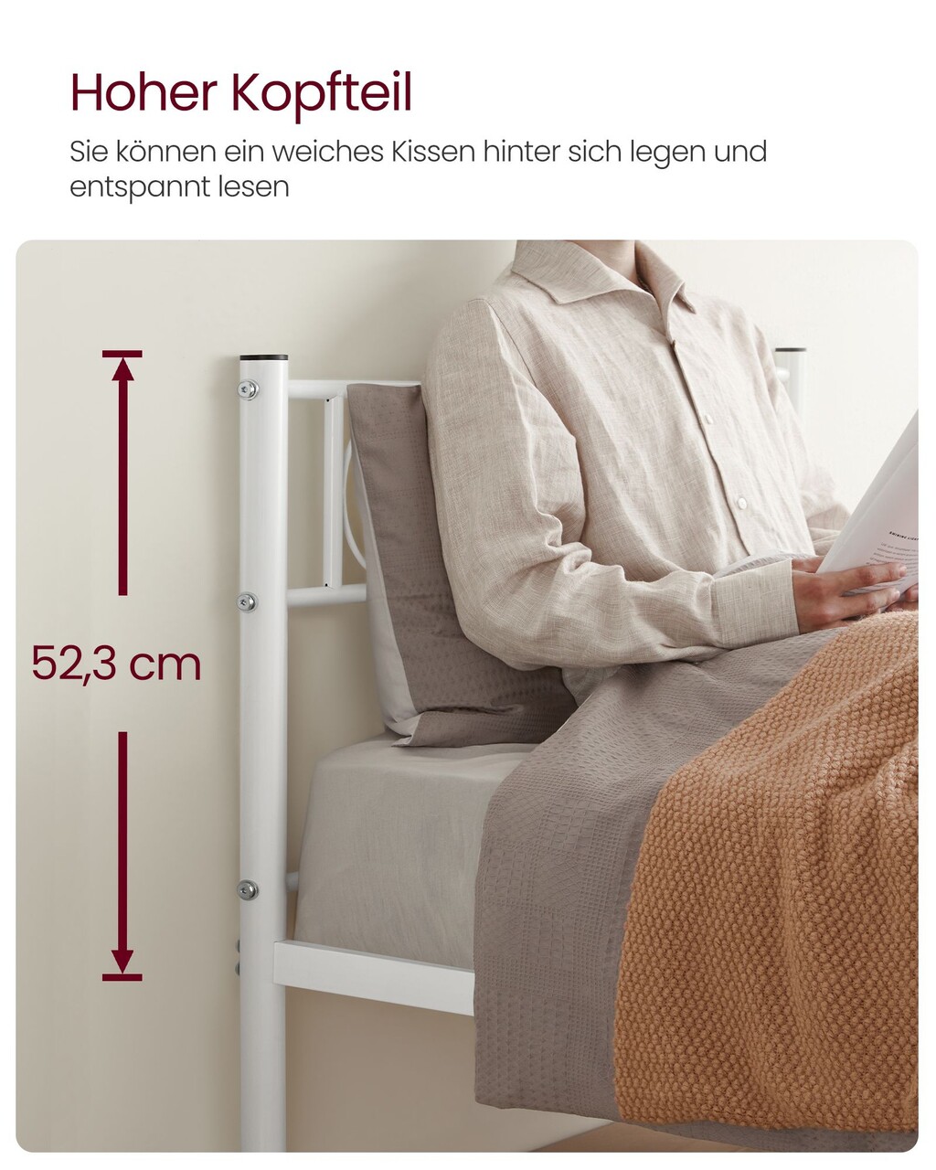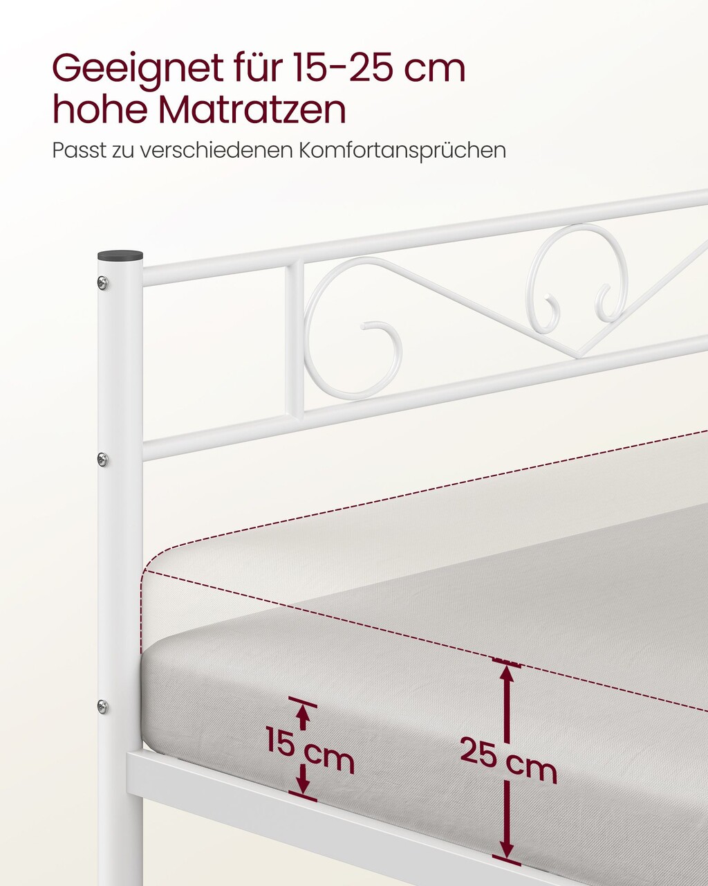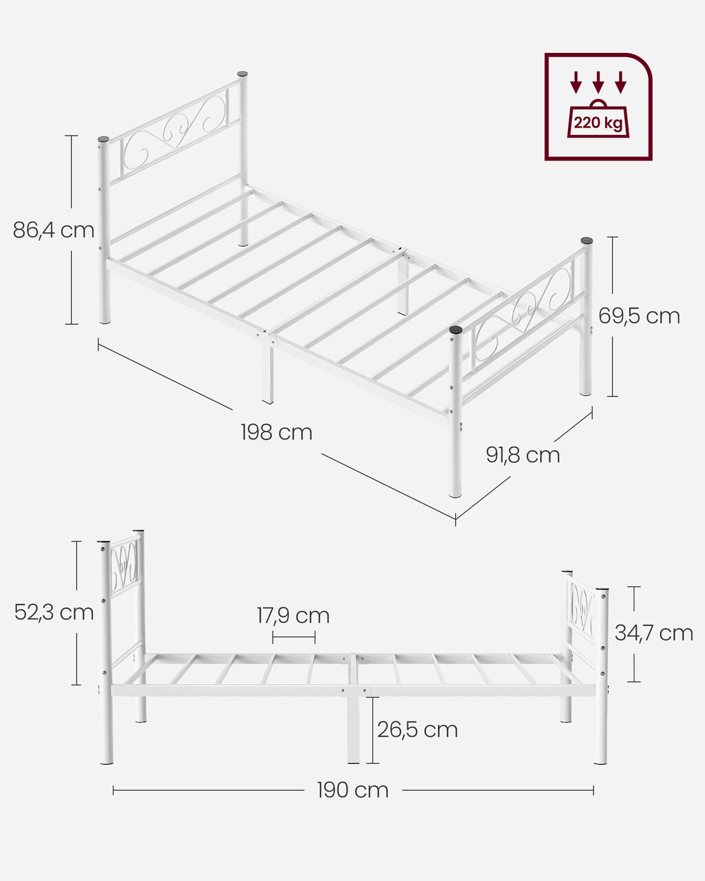 Cadru de pat Single, Vasagle, 90x190 cm, otel, alb