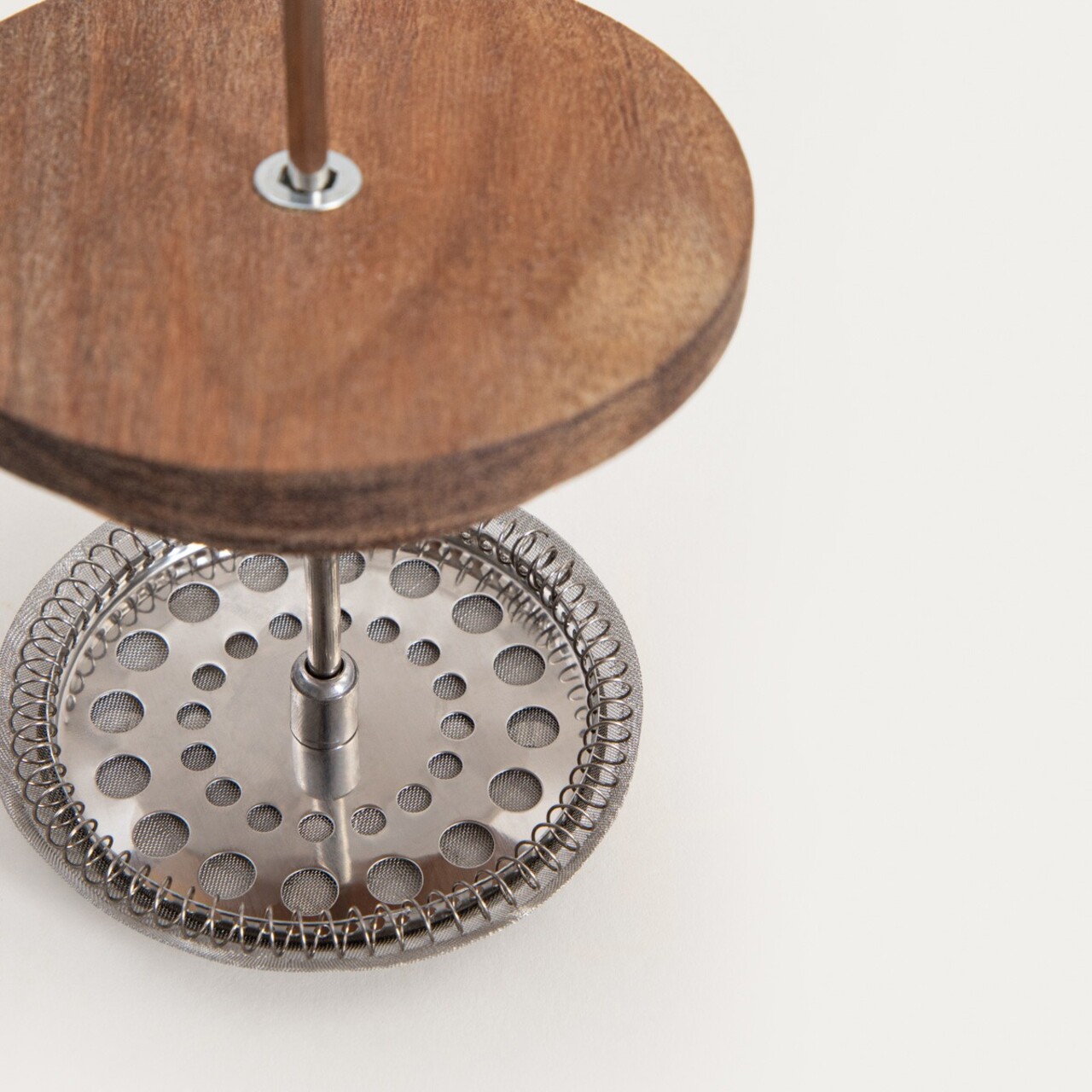 Ceainicul este fabricat din sticla borosilicata, sita este din otel inoxidabil, iar capacul este din lemn. Peretii dubli ajuta la mentinerea temperaturii infuziei pentru o perioada mai lunga de timp. Ceainicul trebuie spalat manual si nu trebuie utilizat in cuptorul cu microunde. Intervalul de temperatura de utilizare este de la -20 °C la 250 °C.