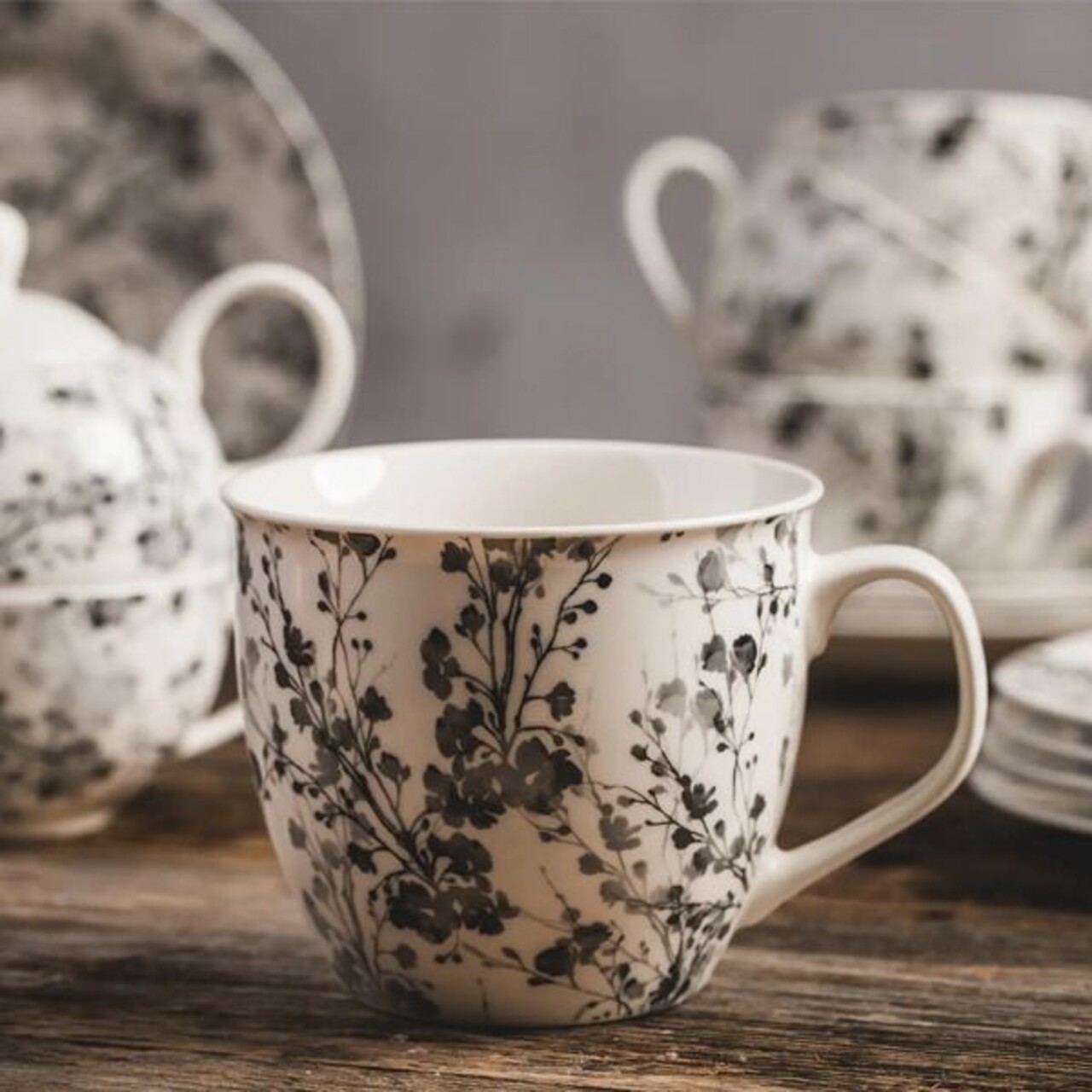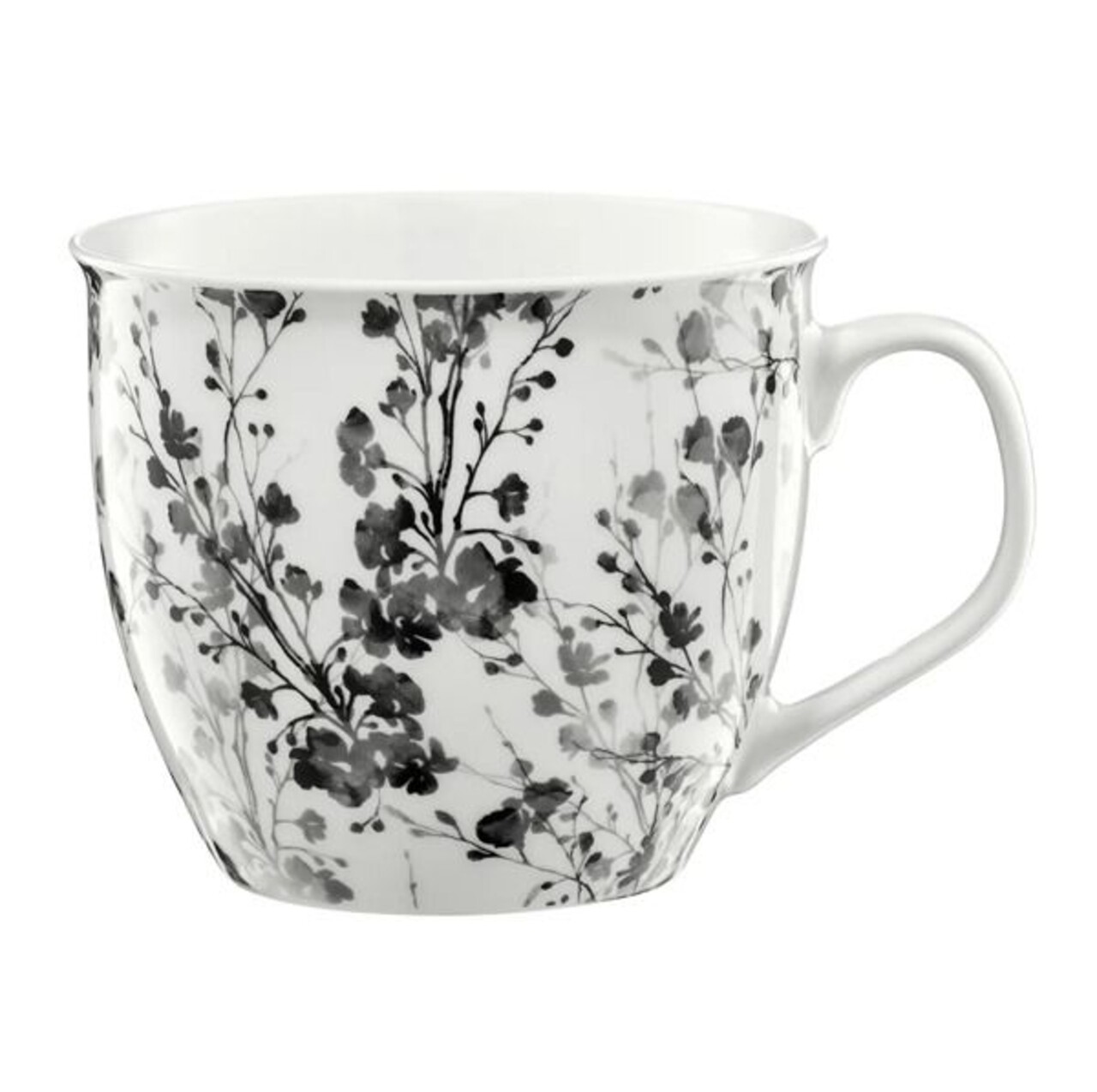 Cana 550 ml, colectia Black Nature este fabricata din portelan New Bone China de inalta calitate, decorata cu un decor contrastant, care straluceste prin fundalul monocromatic, creand nuante subtile si delicate sub forma unor crengute florale. Datorita formei si designului este potrivita atat pentru bucatariile clasice cat si pentru cele moderne.