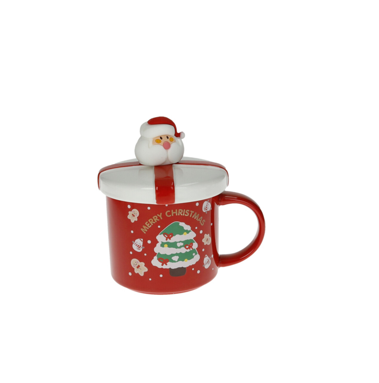 Cana cu capac si lingurita, Father Xmas Red Gold, Brandani, 10x13.5 cm, portelan New Bone China