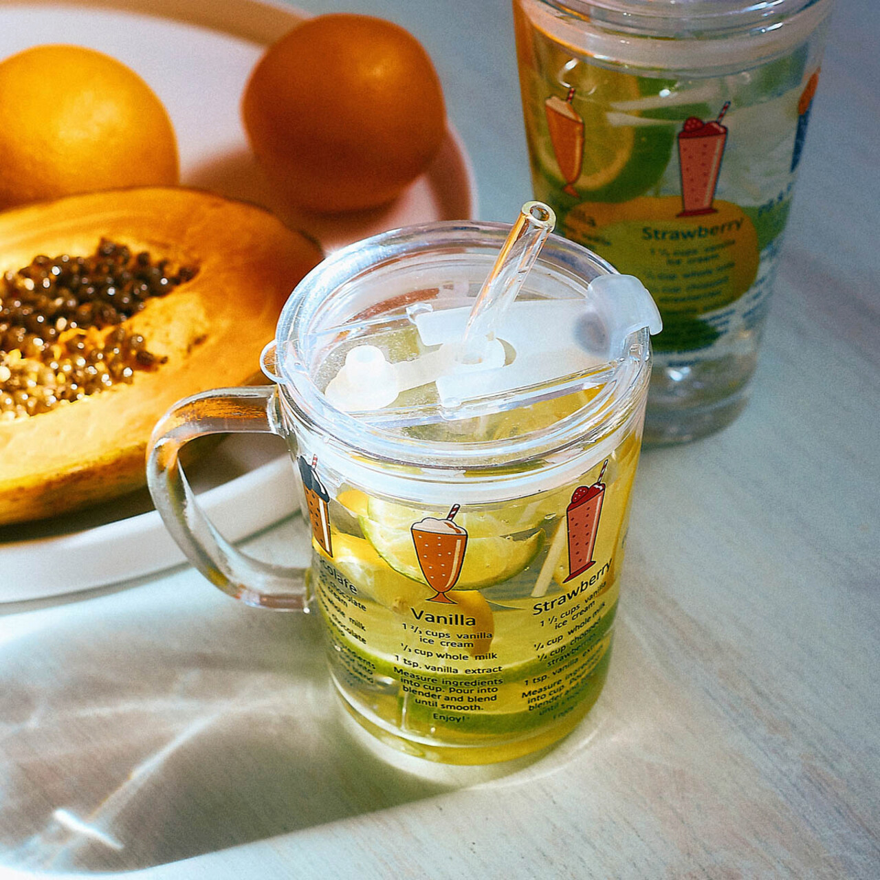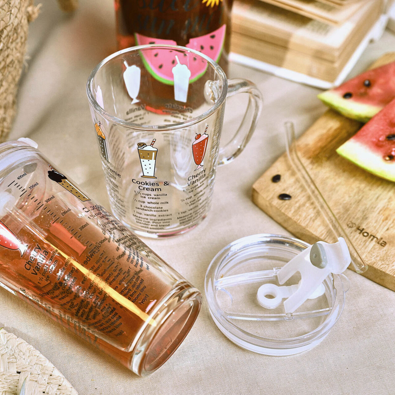Cana cu capac si pai Embo, Homla, 400 ml, sticla/plastic/silicon, multicolor