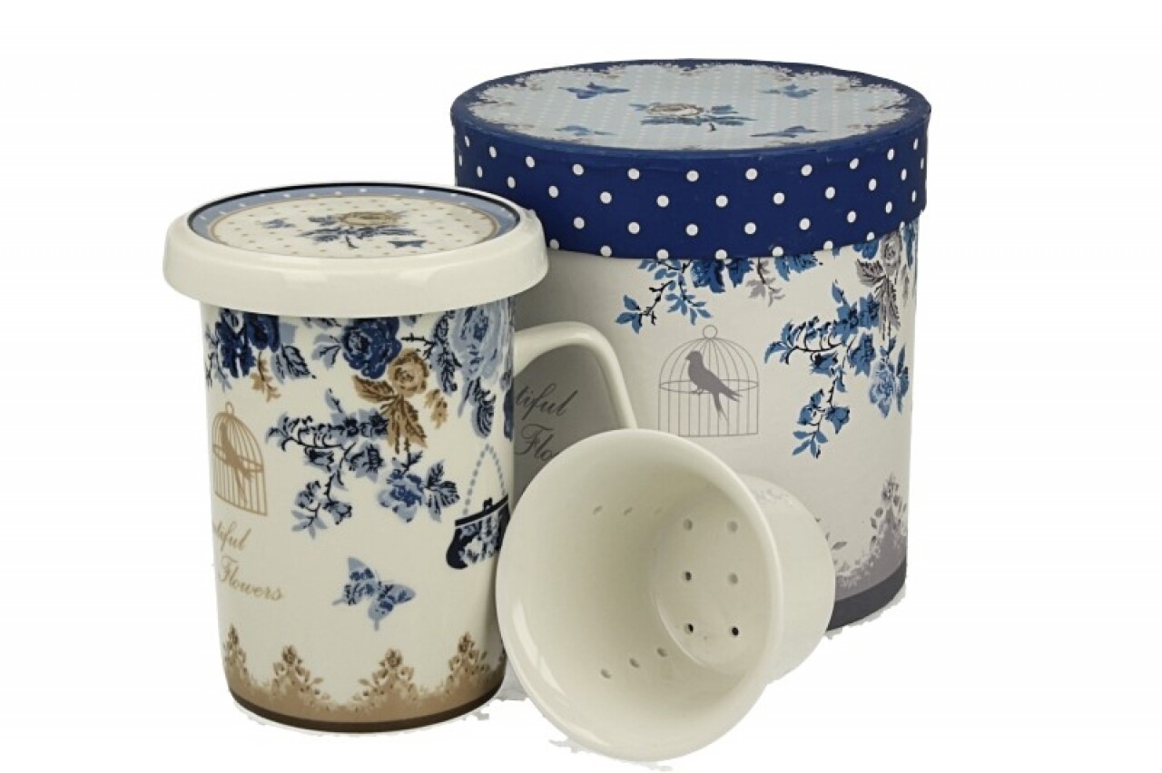 Cana cu infuzor Alaska, Duo, 320 ml, portelan, albastru