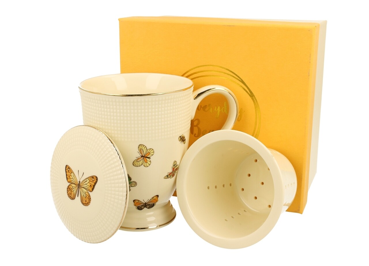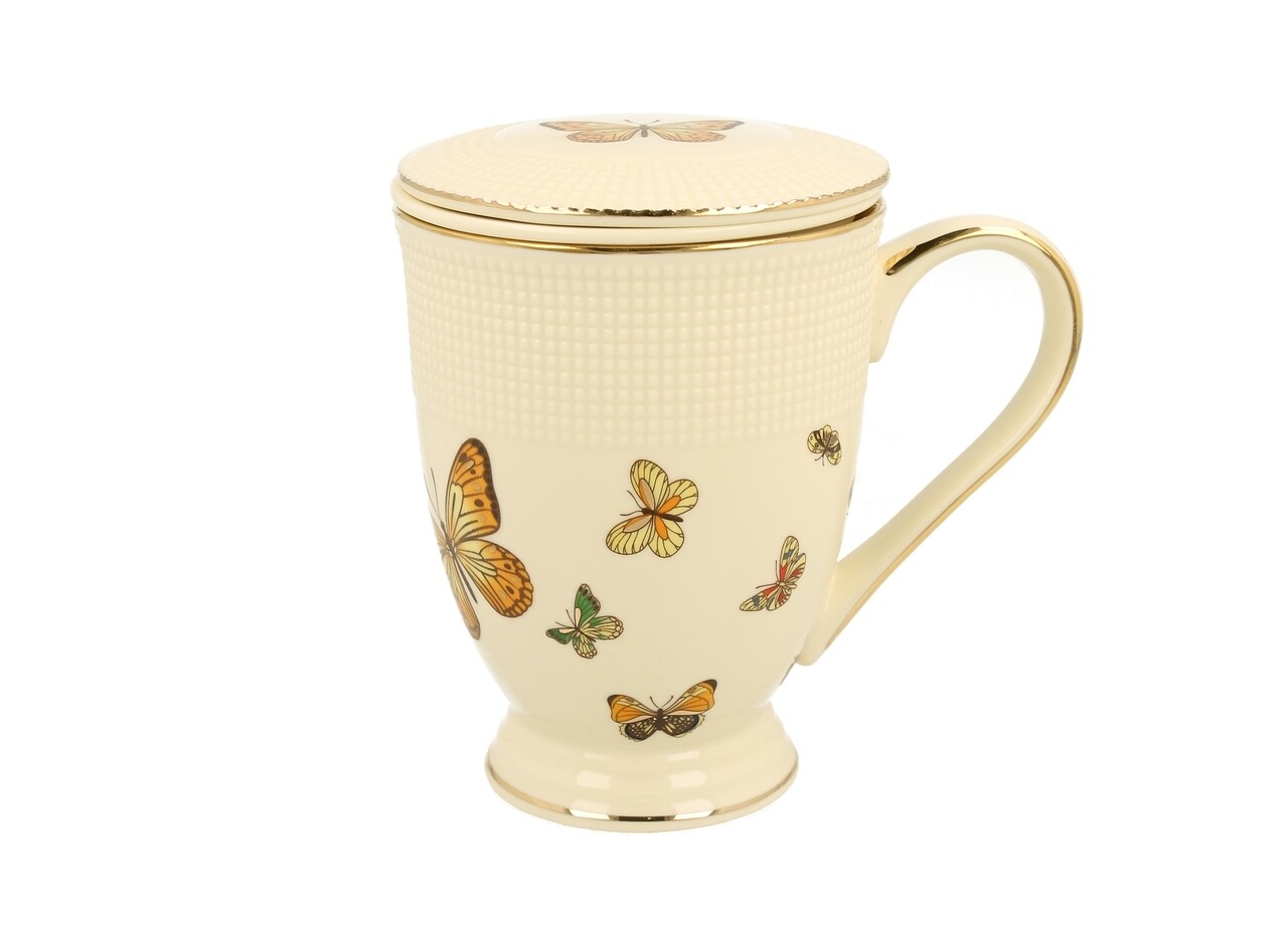 Cana cu infuzor Butterfly, Duo, 400 ml, portelan, multicolor