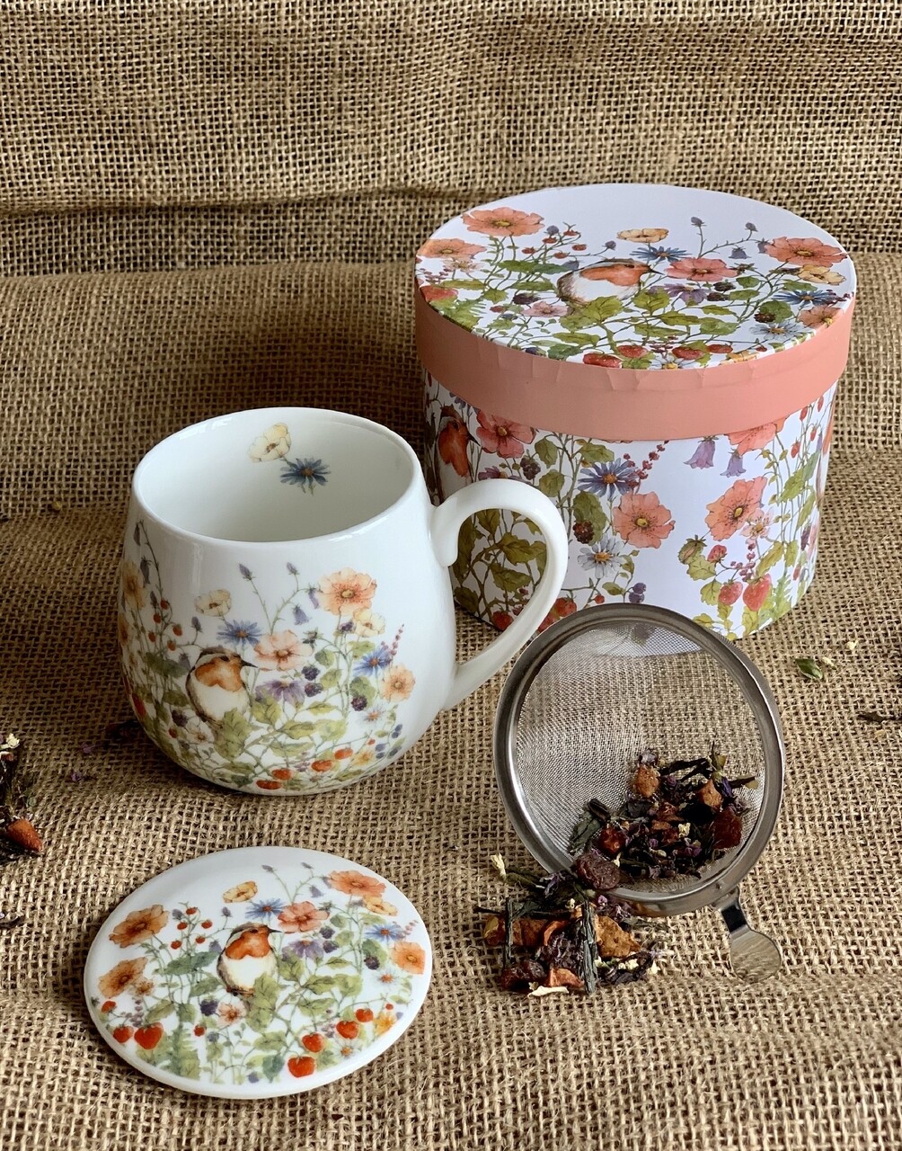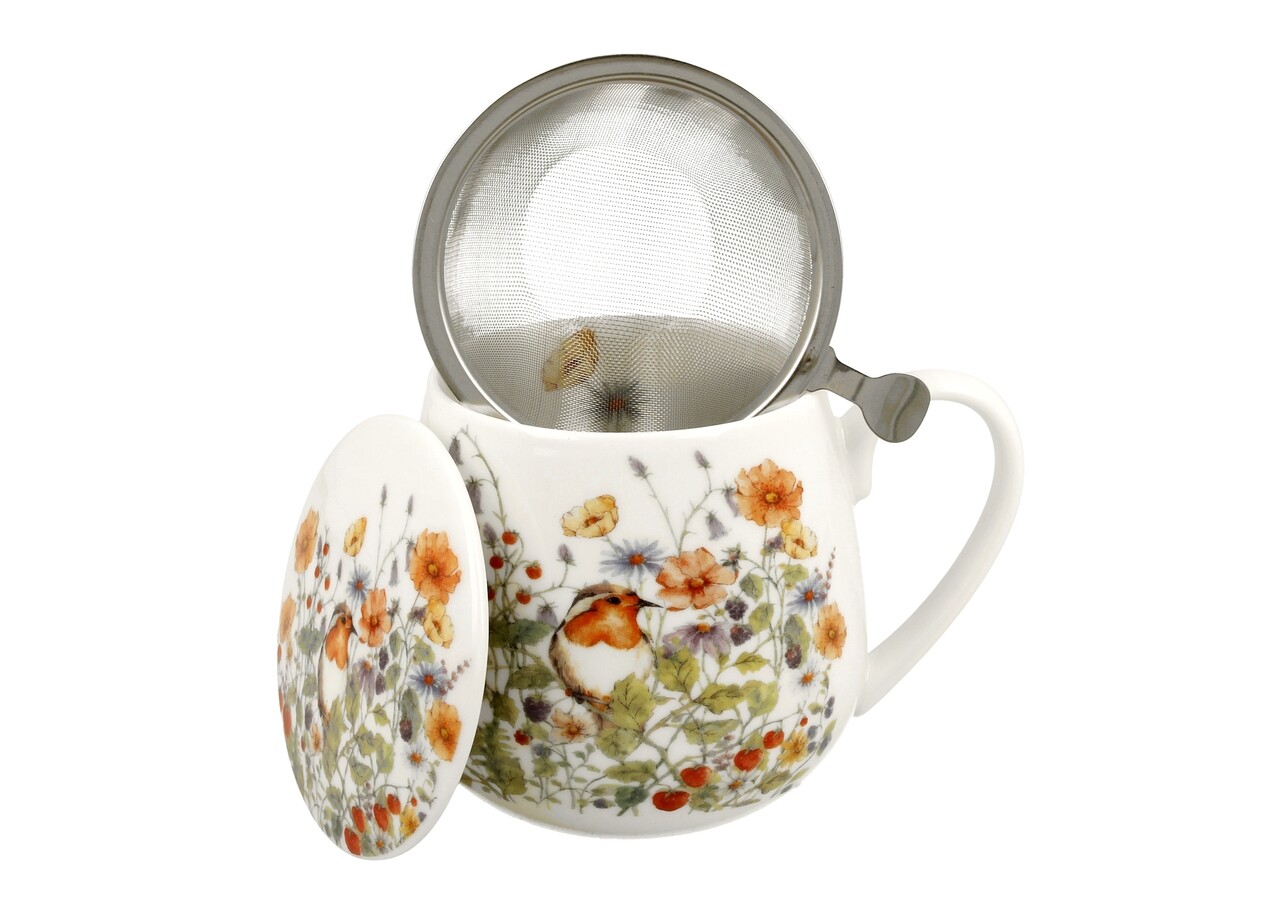 Cana cu infuzor, DUO, Wild Birds, 430 ml, portelan, multicolor