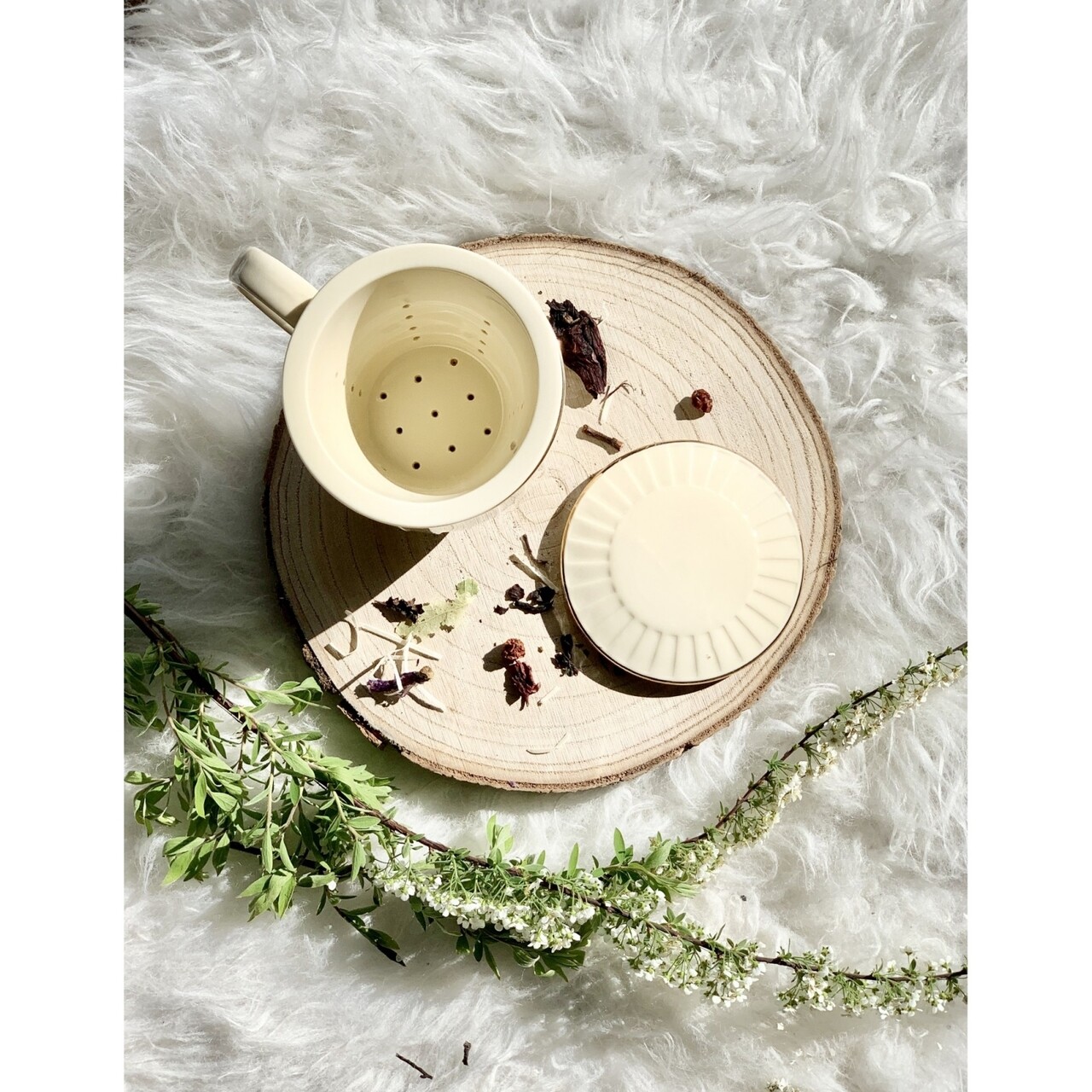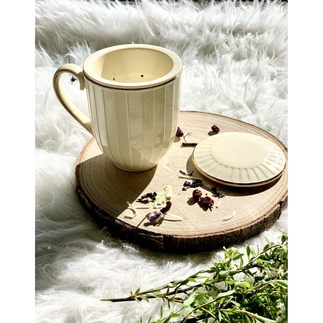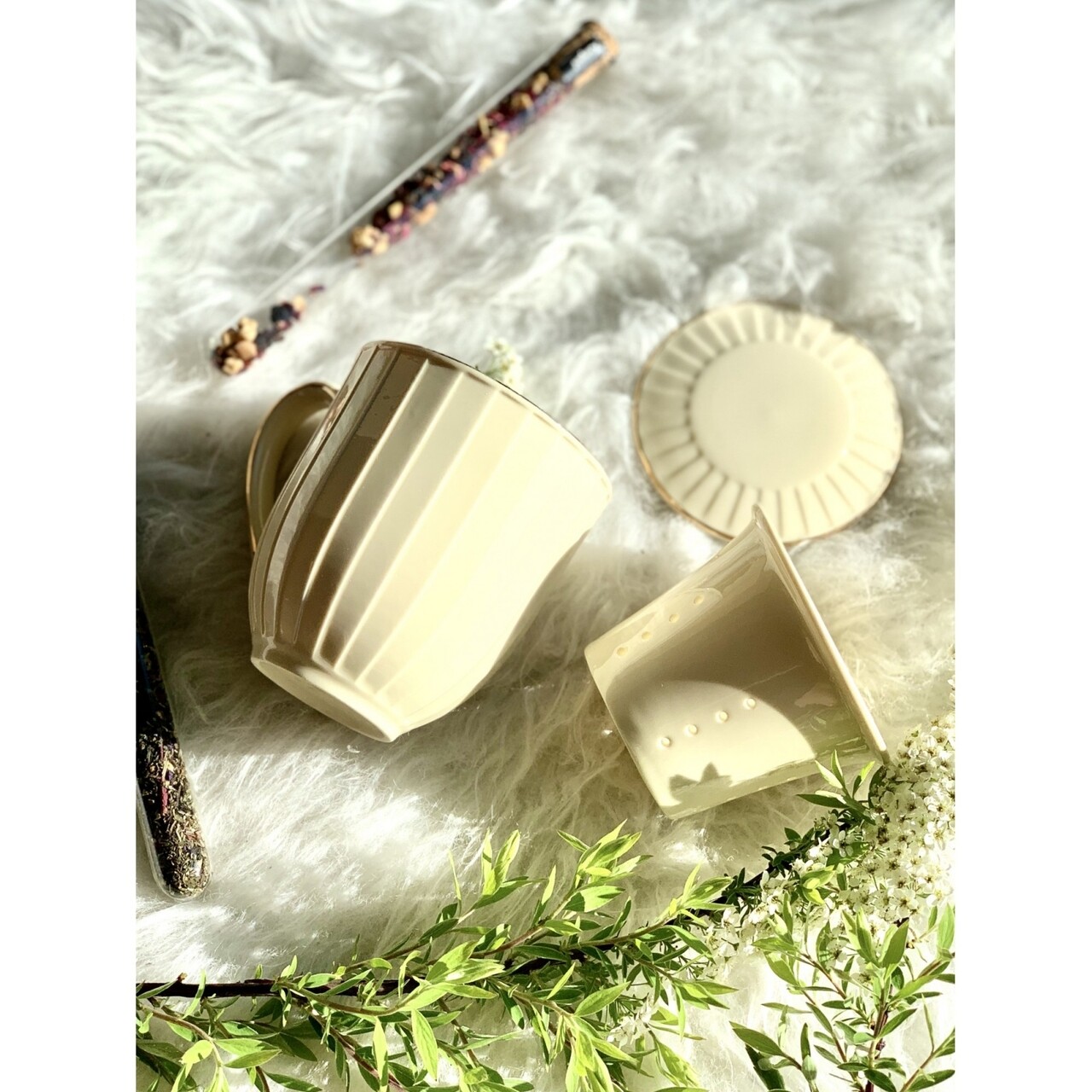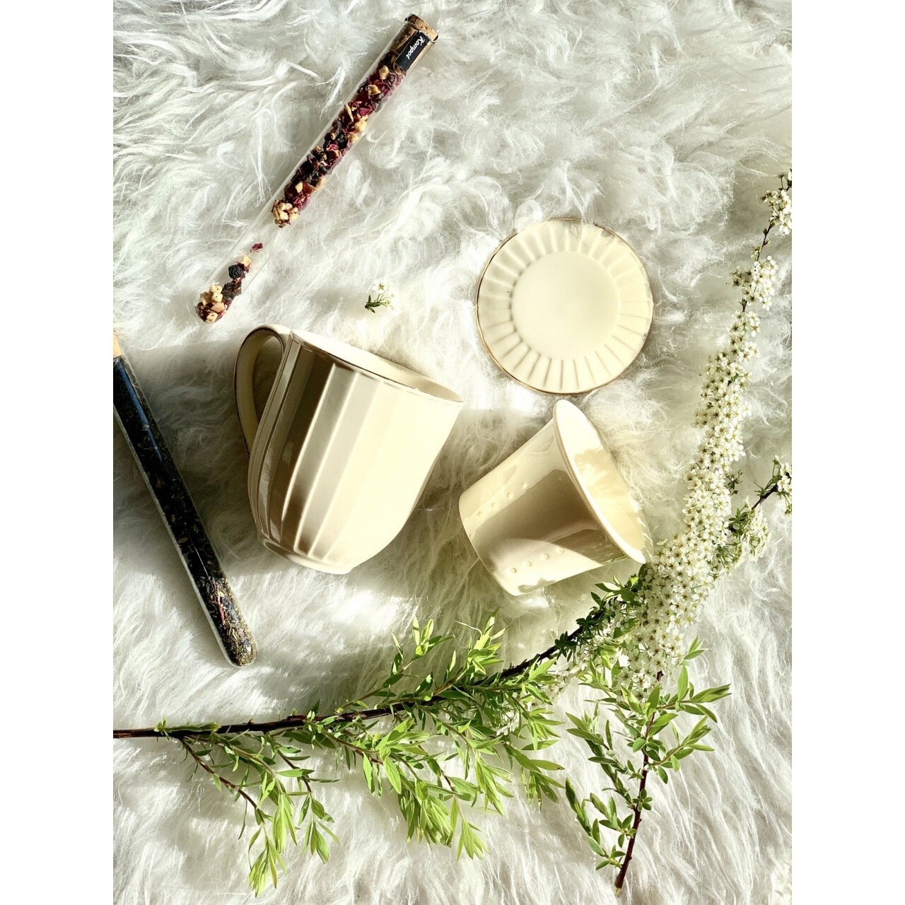 Cana cu infuzor Nina, Duo, 400 ml, portelan, alb/auriu