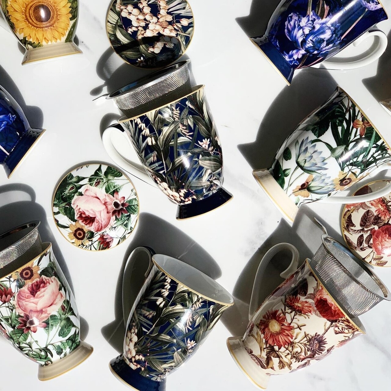 Cana cu infuzor Spring Flowers, Duo, 325 ml, portelan, multicolor