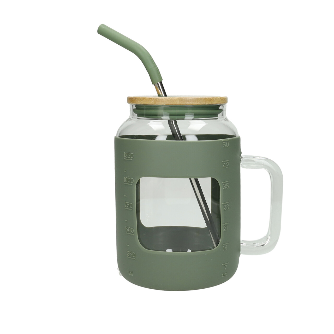 Cana cu maner si pai, Curvy Military, Brandani, 12.5x18.5 cm, sticla/silicon/bambus