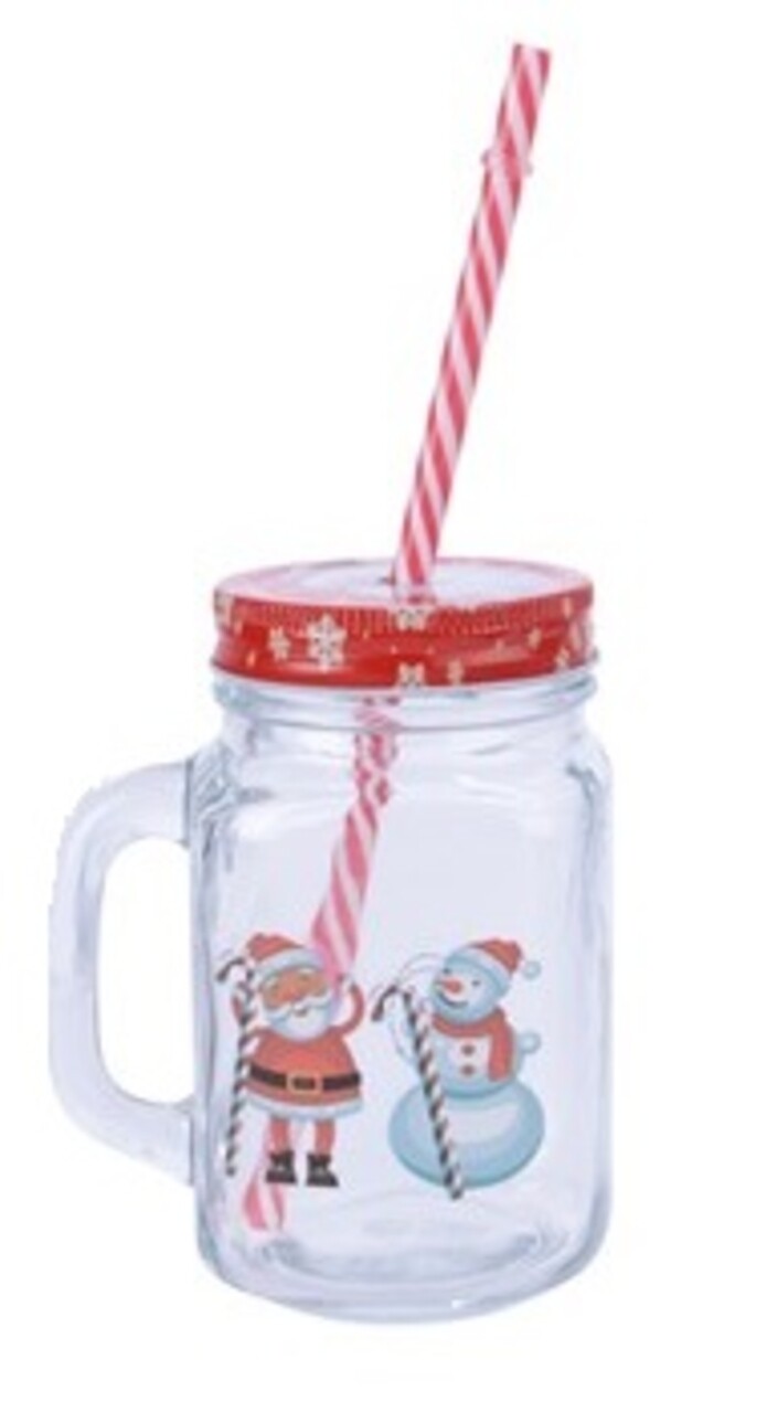 Cana cu pai Santa and Snowman, Decoris, 450 ml, sticla, multicolor