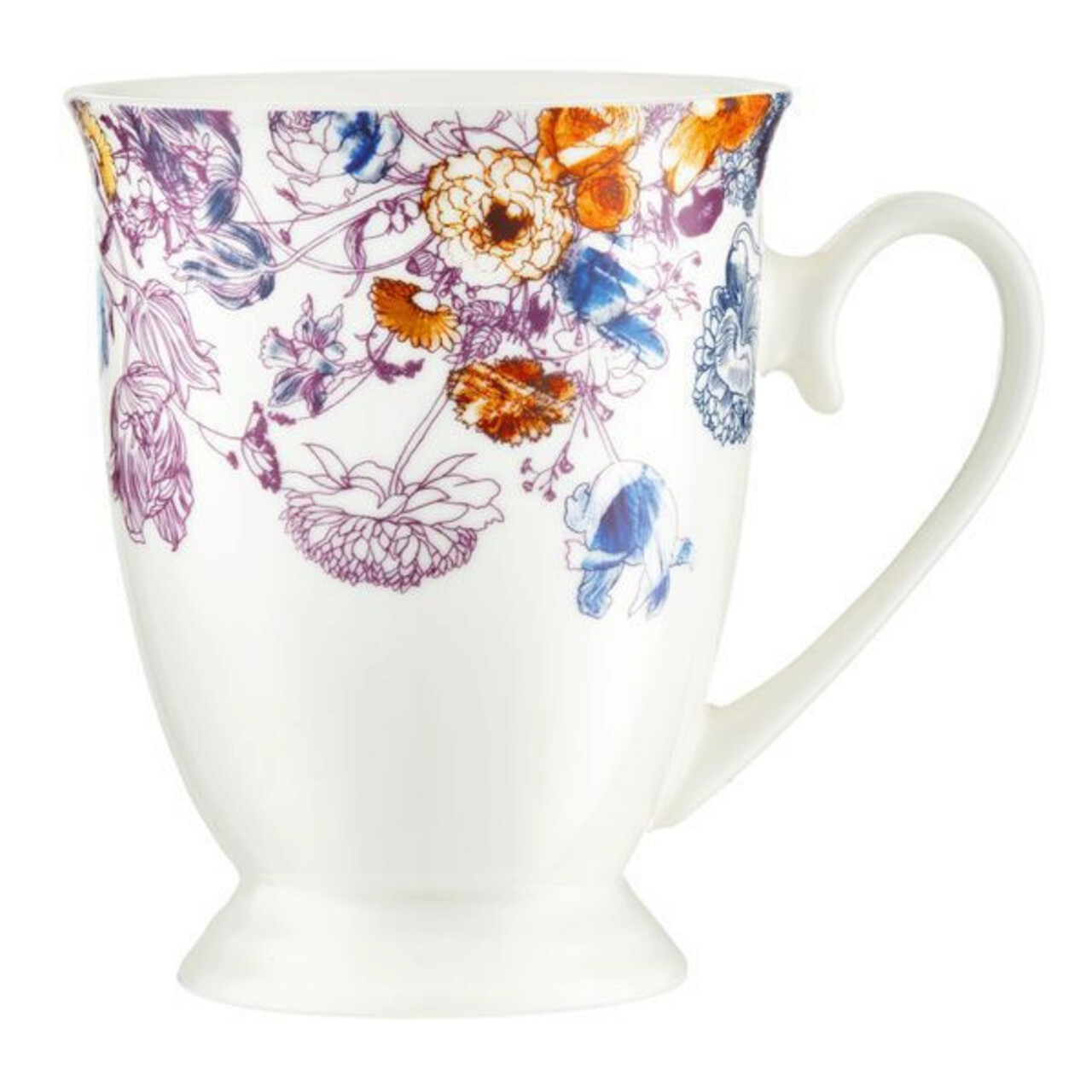 Cana din portelan de inalta calitate, cu o capacitate de 300 ml. Designul elegant si simplu este completat de albul luminos si de decoratiunile florale in culori calde care aduc un plus de culoare oricarei mese. Potrivit pentru cuptorul cu microunde dar si pentru masina de spalat vase.
