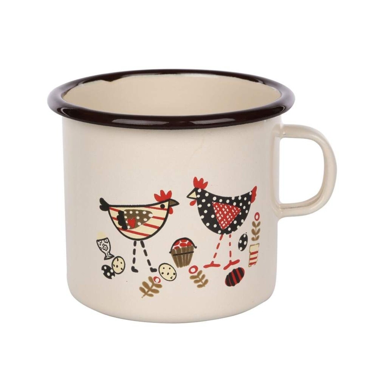 Cana emailata Hen, Silesia, 9x9 cm, 450 ml, crem