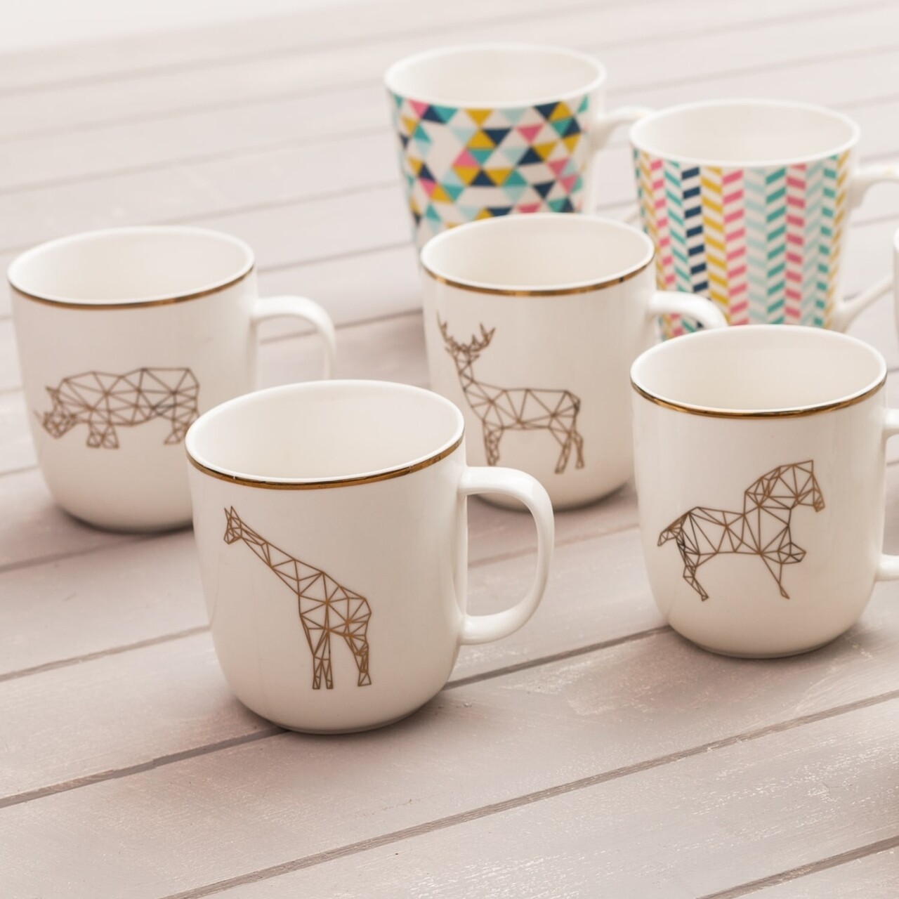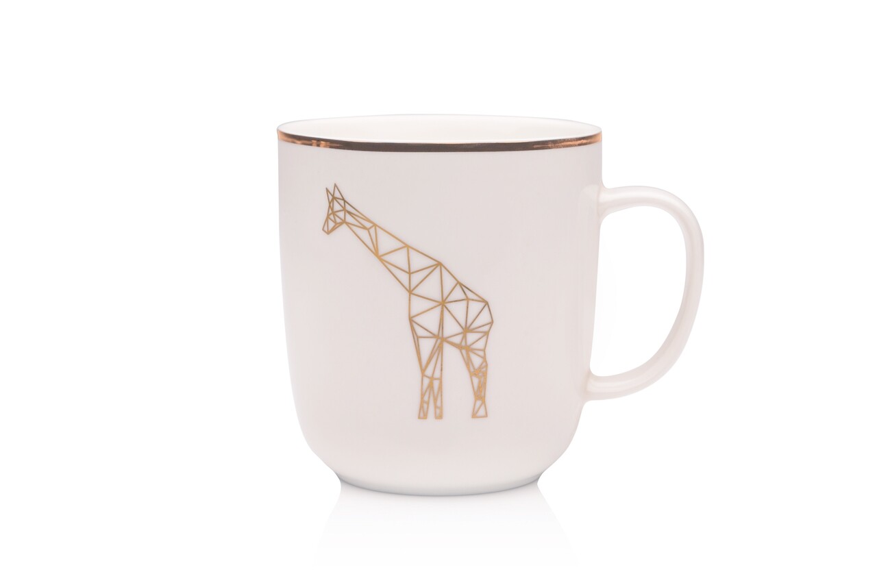 Cana Giraffe, Sabichi, 450 ml, portelan, alb/auriu
